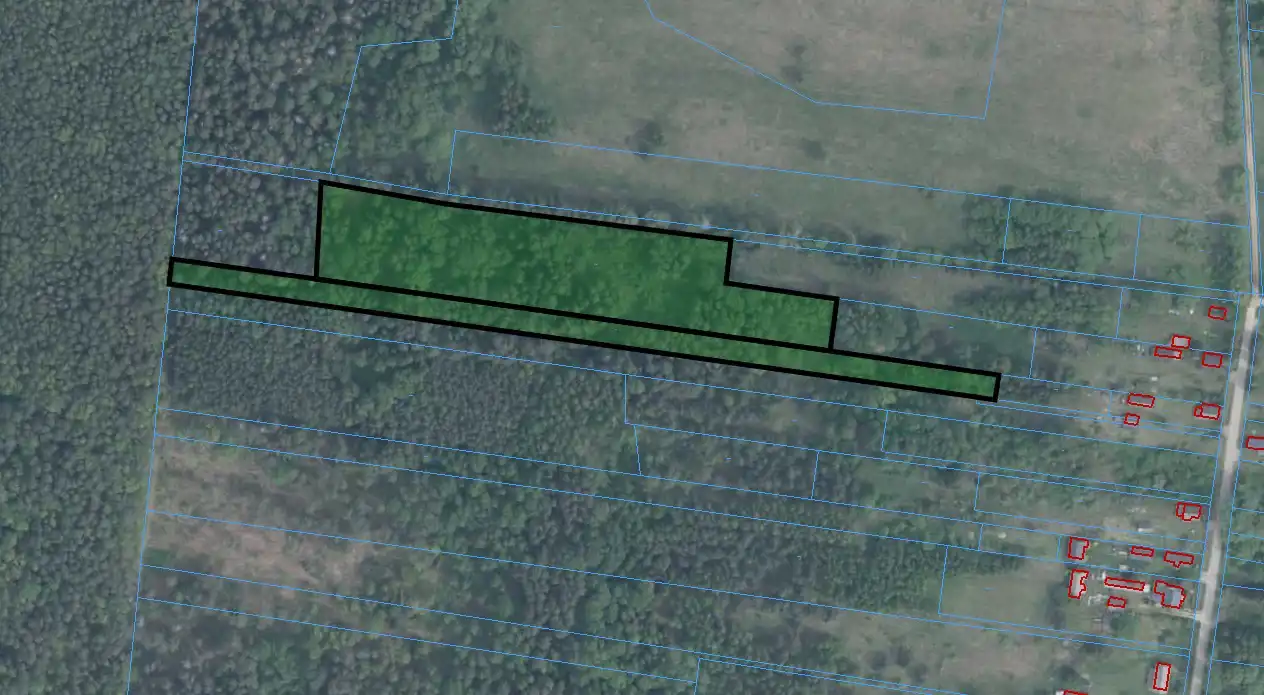 - Działka zalesiona, nieregularny