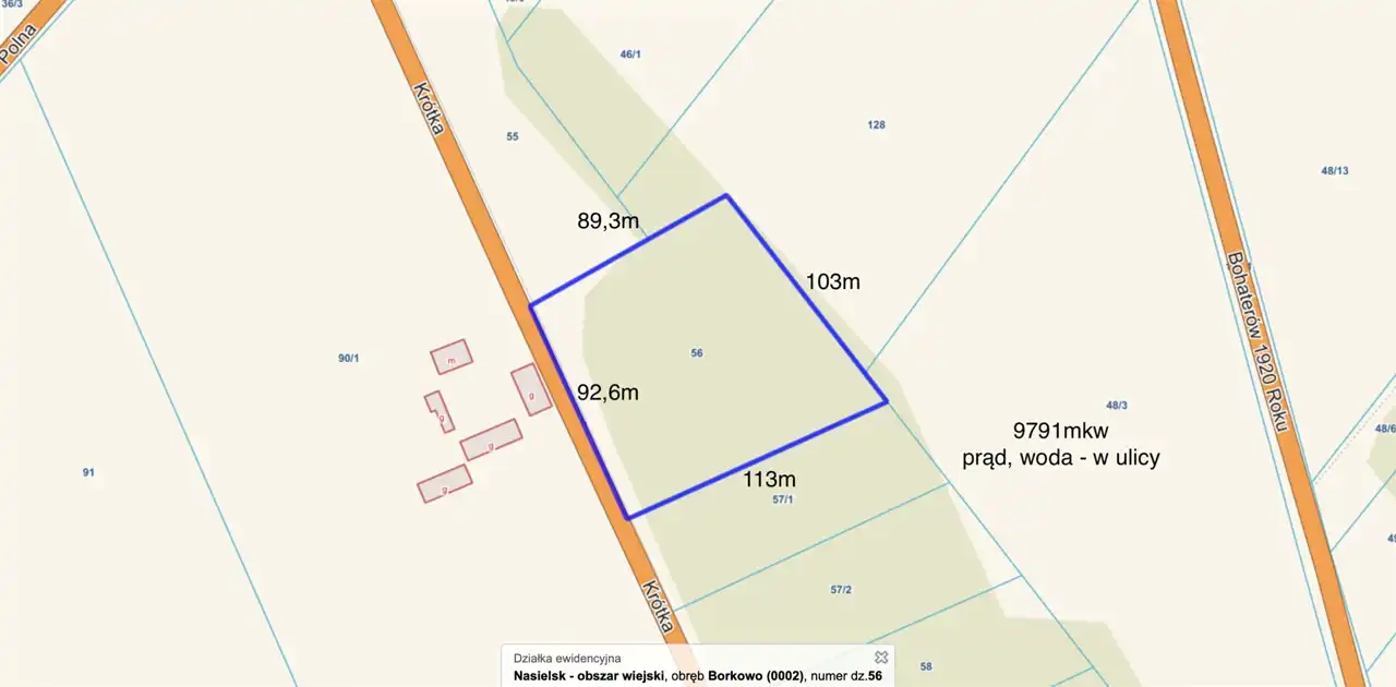 - Media Woda: w ulicy; Kanalizacja: brak; Prąd: jest; Gaz: brak