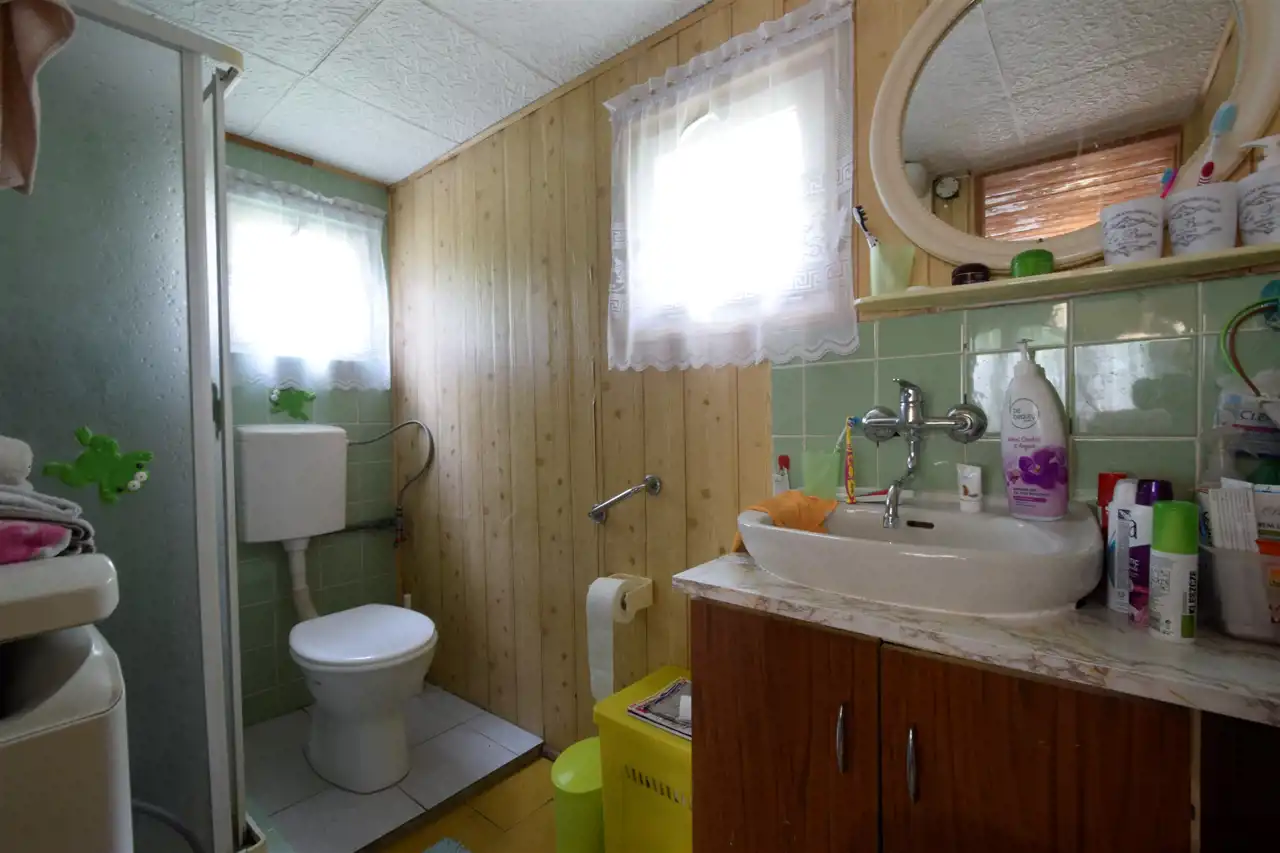 Parter: pokój dzienny, mała kuchnia, łazienka z prysznicem i WC,