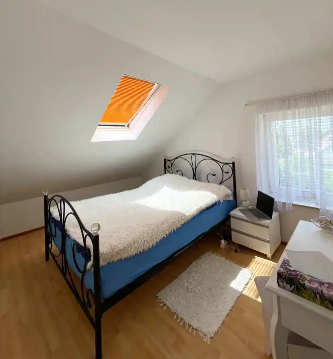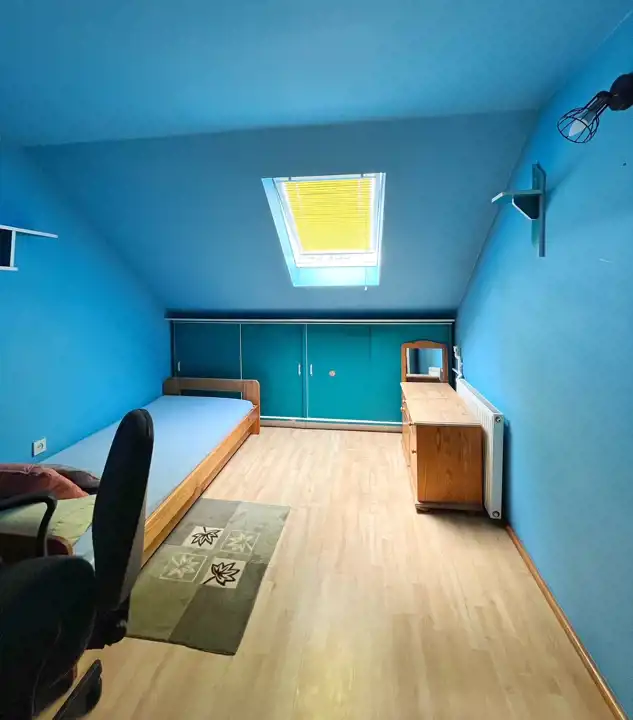 - Drugie piętro: dwie sypialnie, w jednej z nich istnieje możliwość zrobienia łazienki.