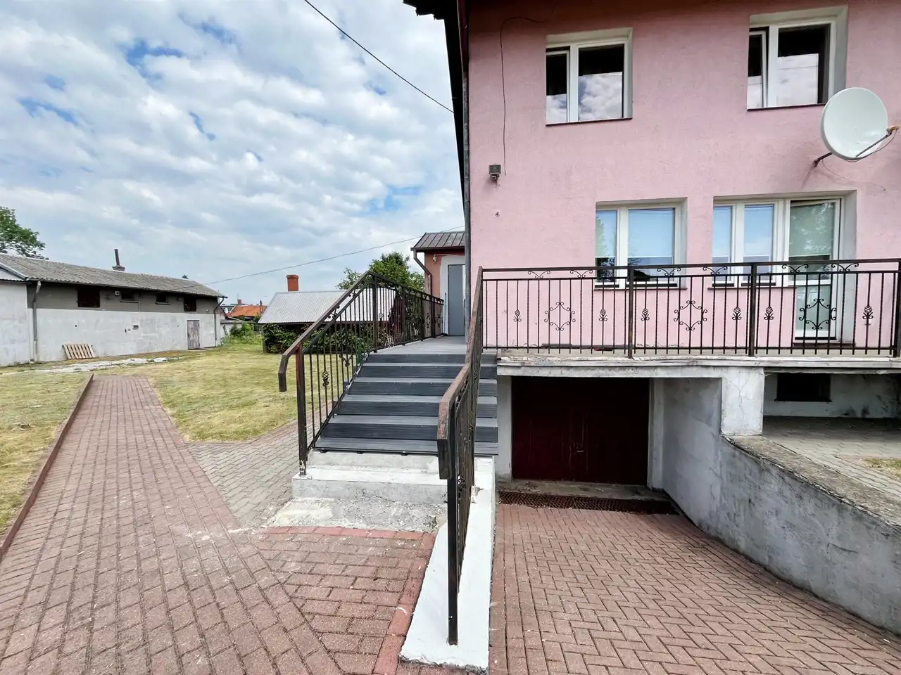 Dom posiada garaż w bryle budynku. Ogrzewanie jest realizowane za pomocą pieca na węgiel lub drewno.