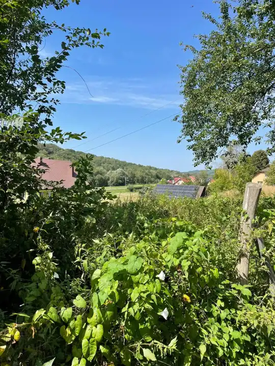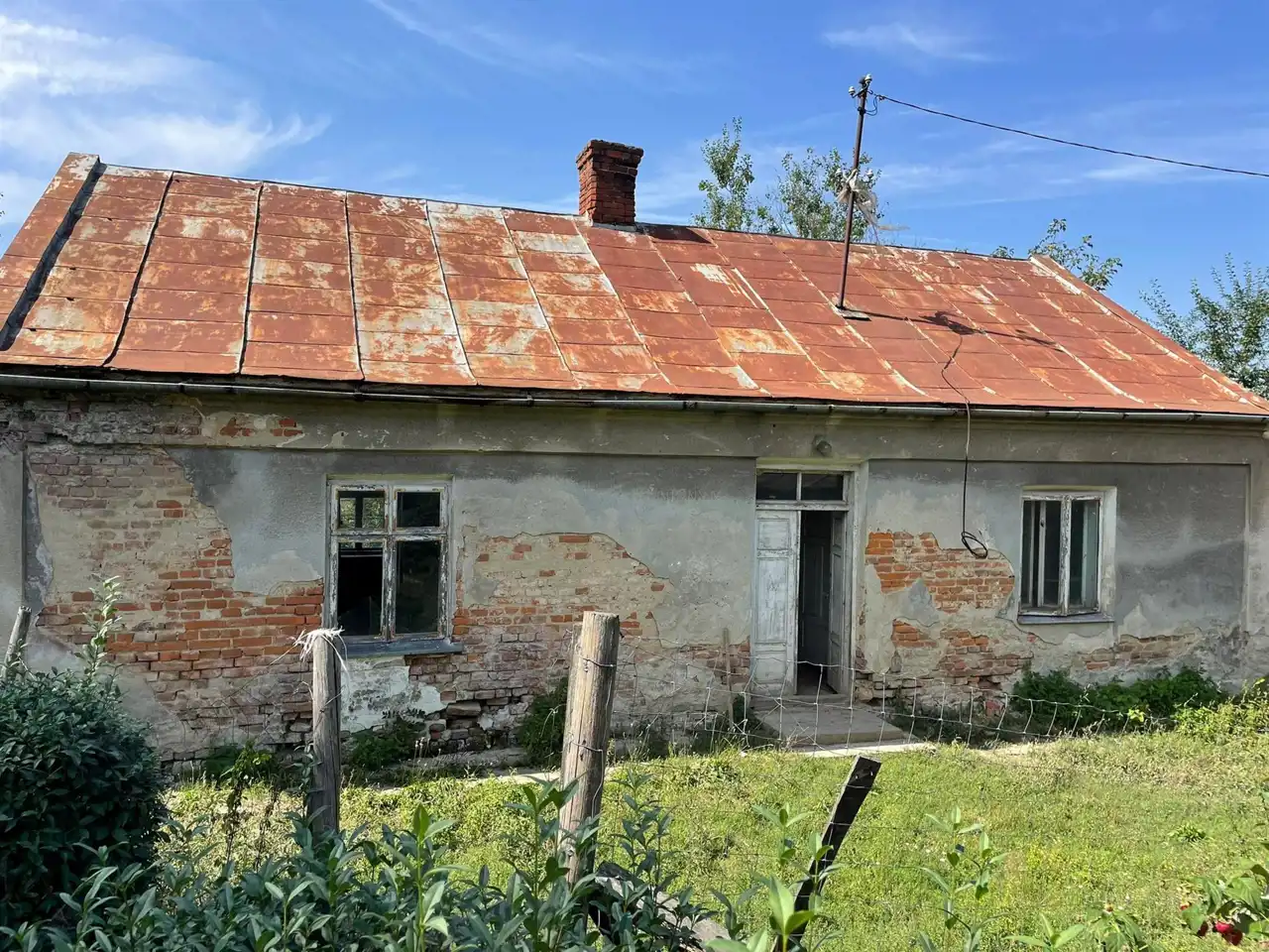 Częścią składową działki jest budynek mieszkalny, murowany ,parterowy częściowo podpiwniczony kryty blachą o powierzchni ok. 90m2, wybudowany latach 1928-35. Od 1992 r dom jest niezamieszkały. Dom nadaje się do całkowitego remontu lub do rozbiórki.