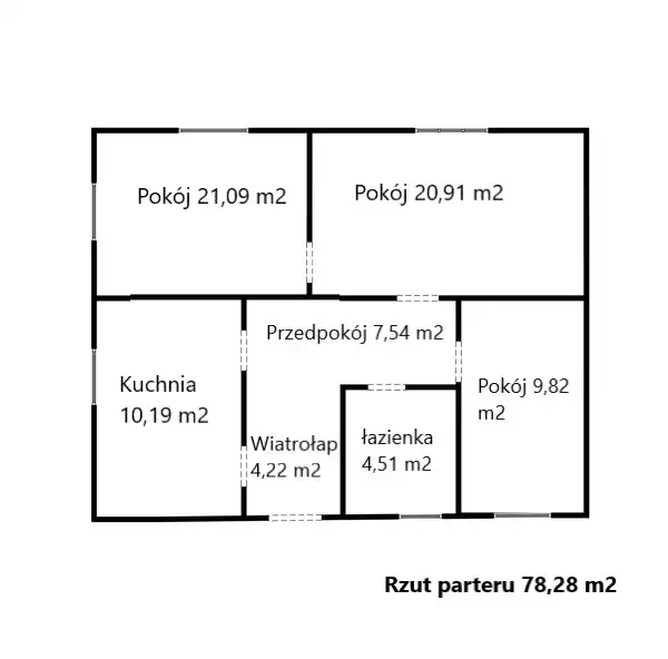 - Charakterystyka mieszkania 78.28 m2, 3 pokoje, do wykończenia