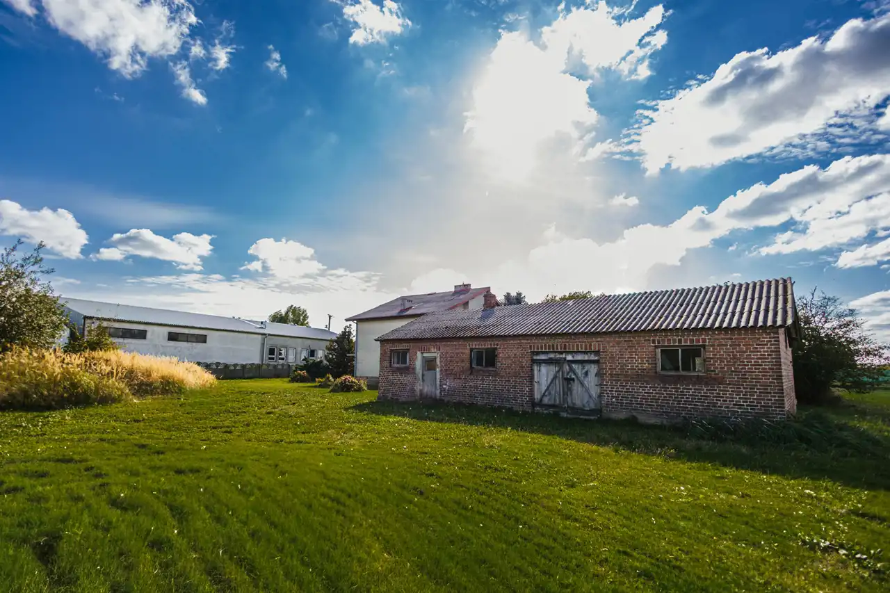 Budynek gospodarczy murowany z cegły, kryty eternitem, nieociepplony.