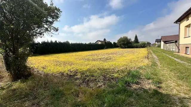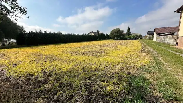 Działka w kształcie trapezu o wymiarach: szer. 26,2 m x dł. 64,0 / 69,0 m. Nieruchomość położona w pierwszej linii zabudowy od asfaltowej drogi gminnej.