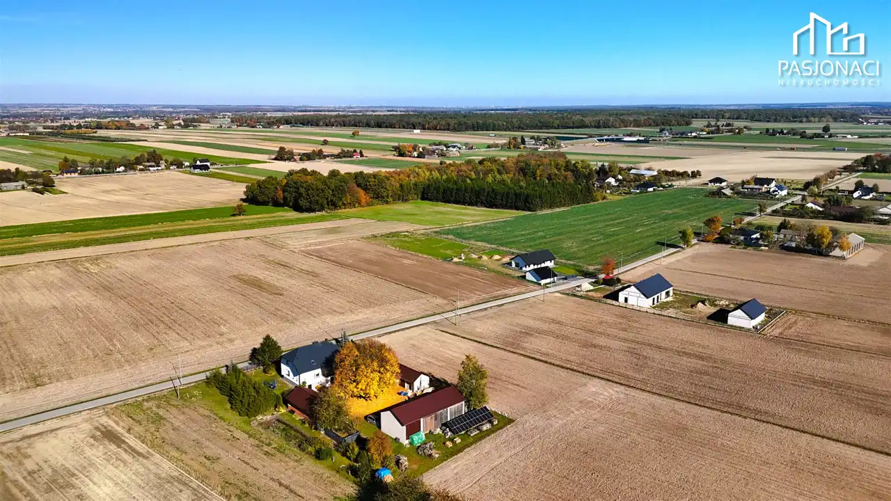 Otoczenie stanowią głównie gospodarstwa i pola uprawne, co gwarantuje ciszę i spokój, a jednocześnie bliskość natury – z działki rozciąga się widok na las.