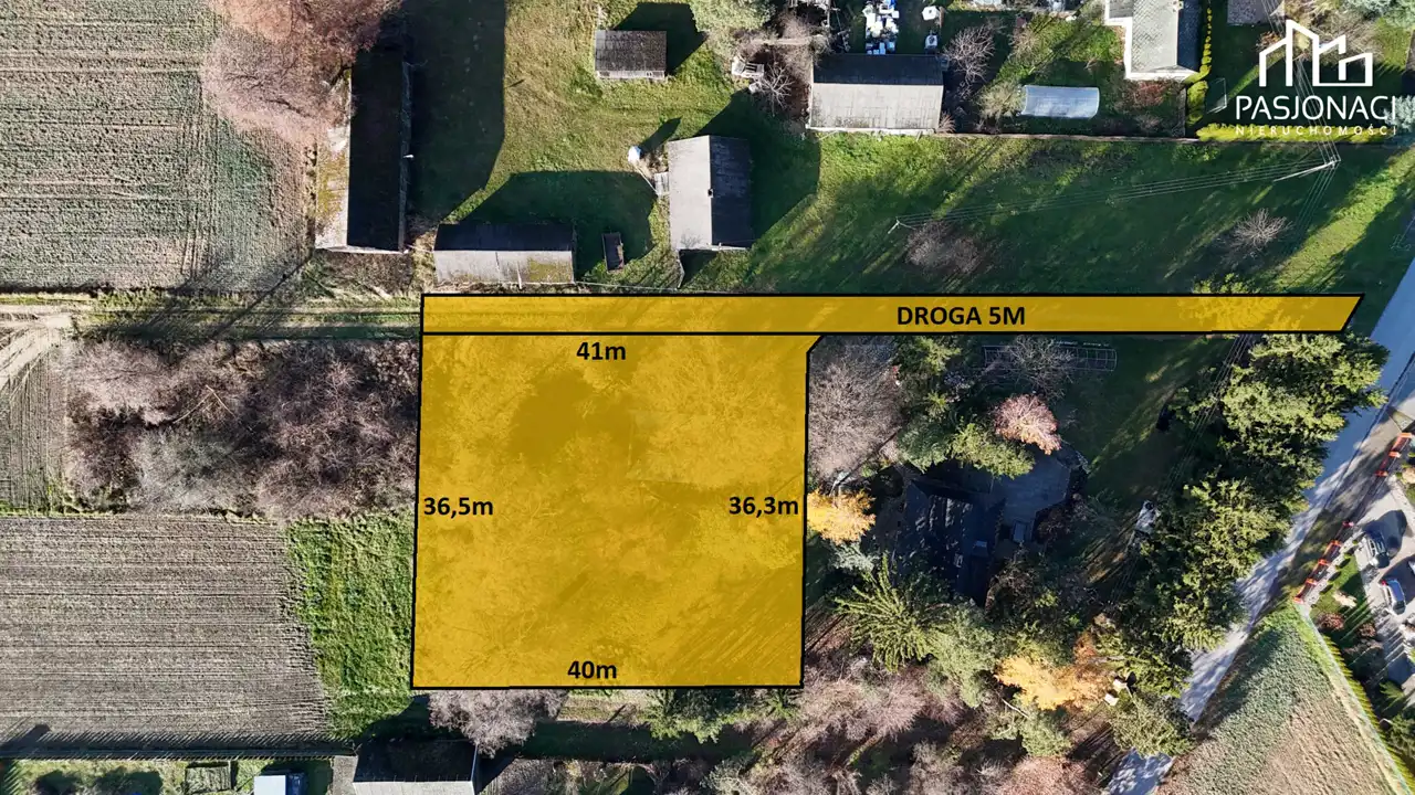 Działka jest w trakcie podziału geodezyjnego działki nr 1613/6 o projektowanej powierzchni 1484m2, która będzie zbywana wraz z udziałem w 5 metrowej drodze dojazdowej.