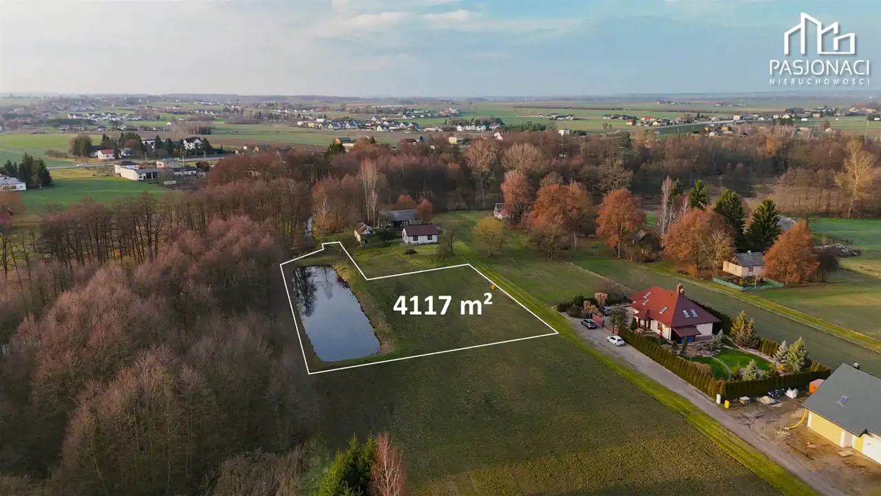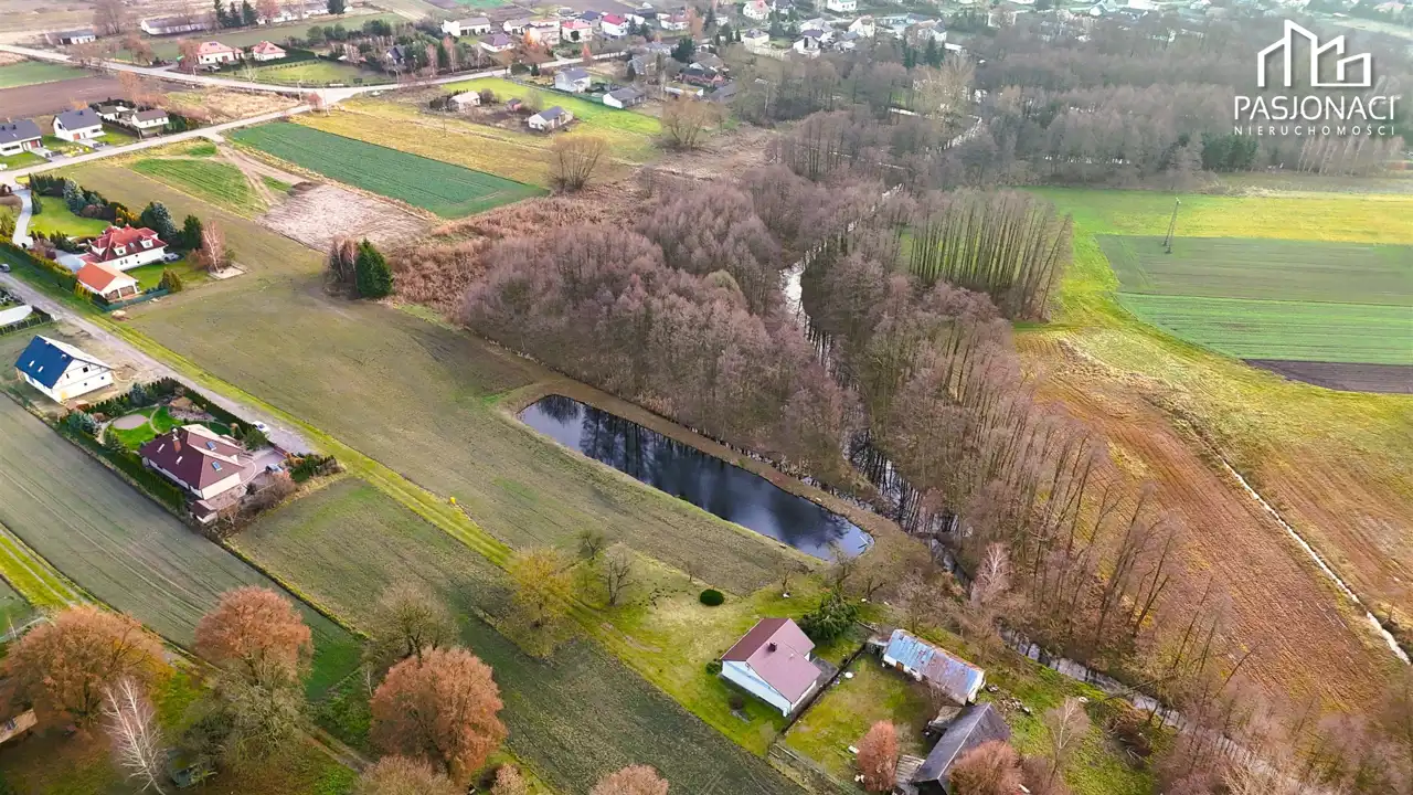 Na działce znajduje się staw o powierzchni około 1200 m²