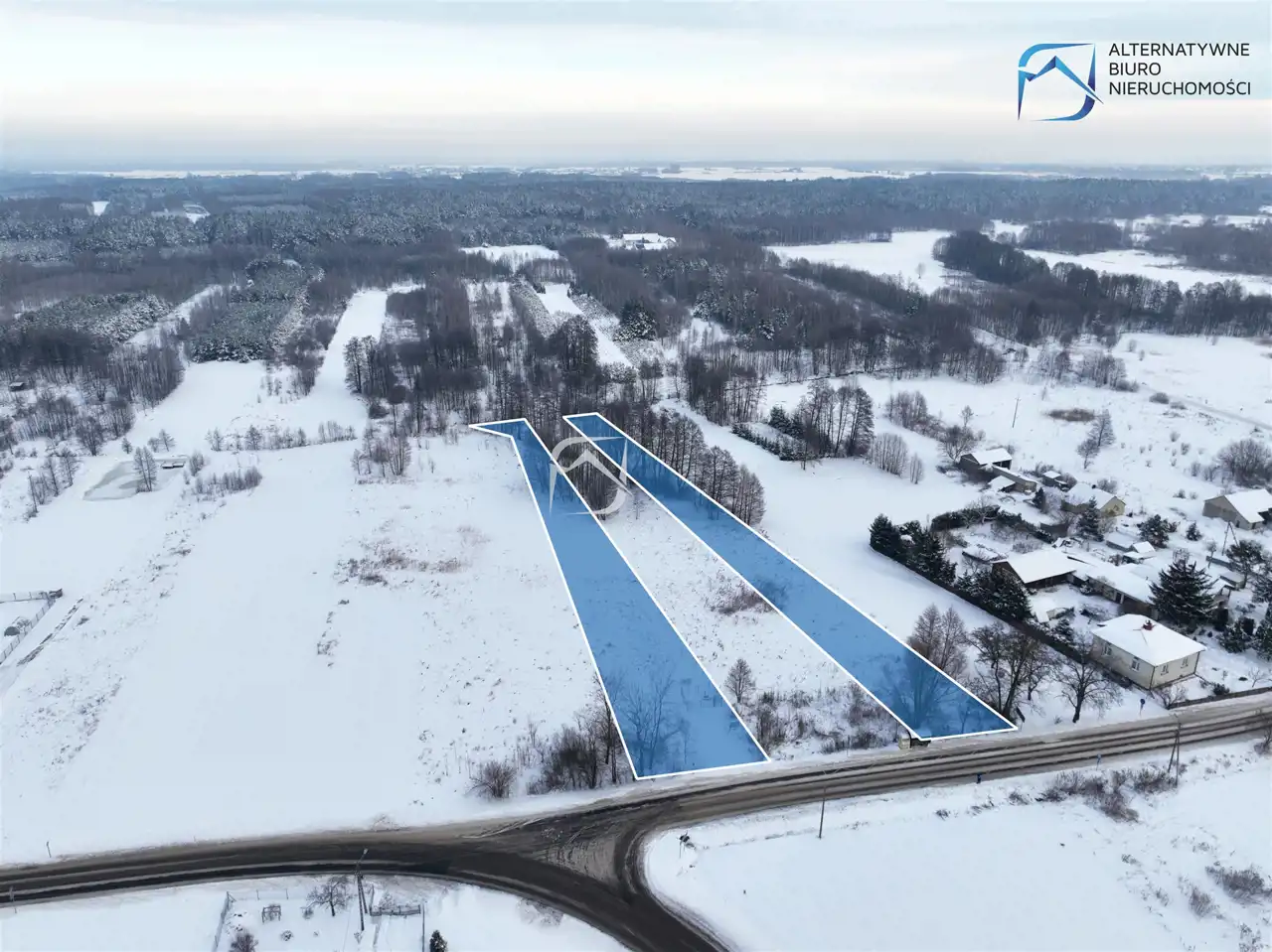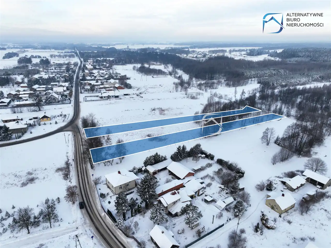 Położone są w pierwszej linii zabudowy od drogi wojewódzkiej nr 821 - co zwiększa atrakcyjność działki pod względem komunikacyjnym. Najbliższe otoczenie stanowią niskie zabudowania jednorodzinne, gospodarstwa rolne i pola uprawne. Warto zaznaczyć, że istnieje możliwość nabycia obydwu działek jak i każdej z osobna.