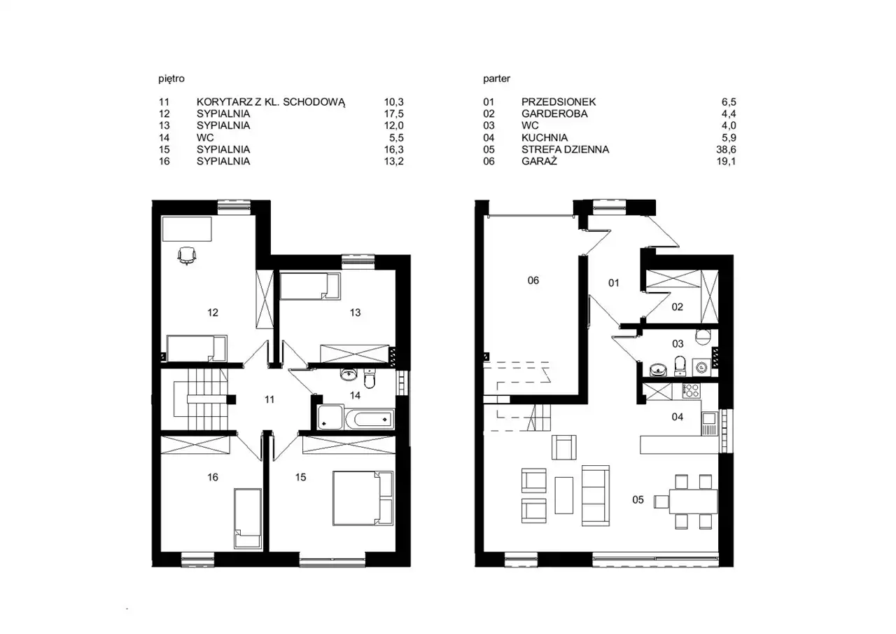 - 4 sypialnie (17,5 m2, 16,3 m2, 13,2 m2, 12 m2),