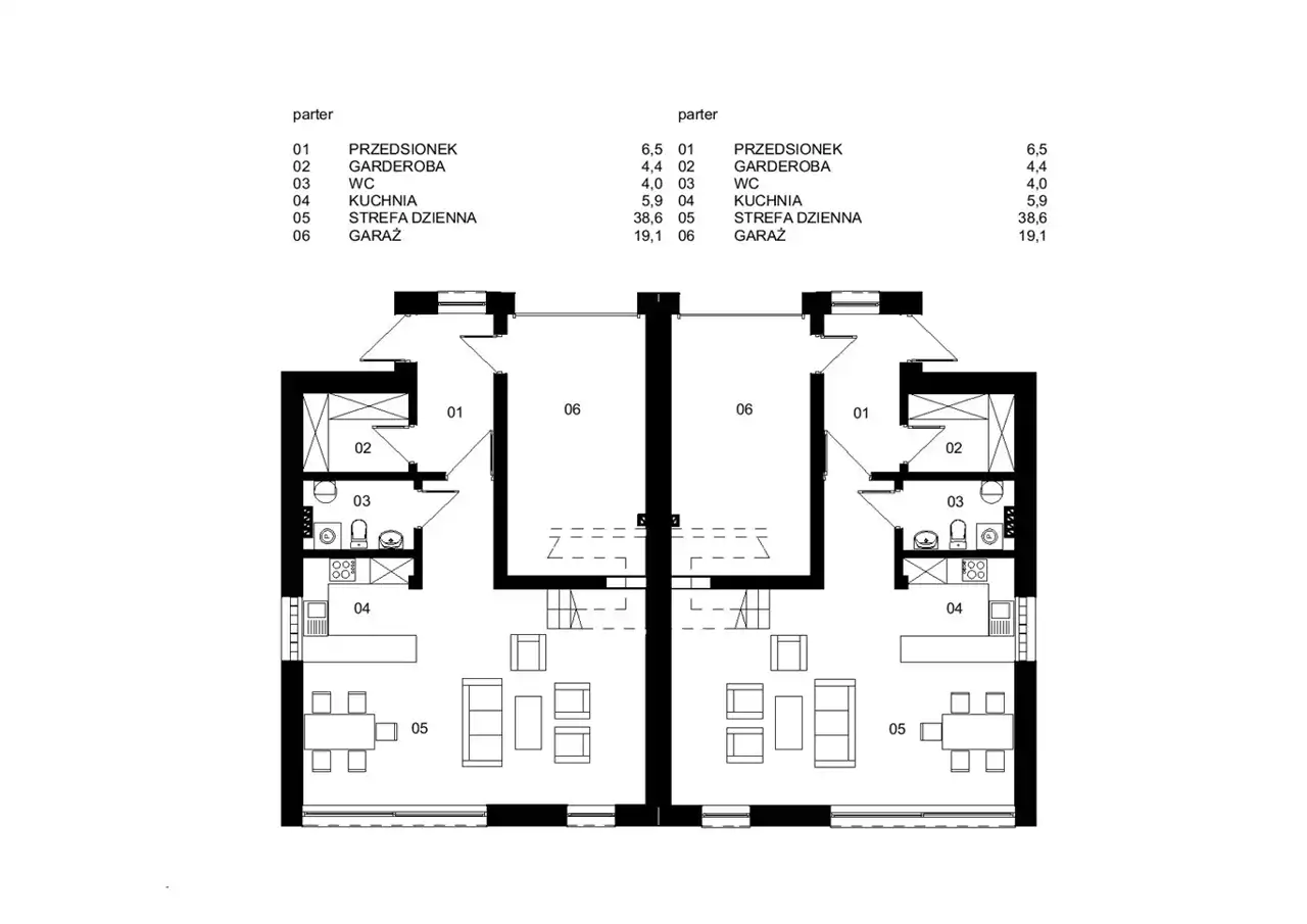 - pokój dzienny z aneksem kuchennym (łącznie 44,5 m2),
