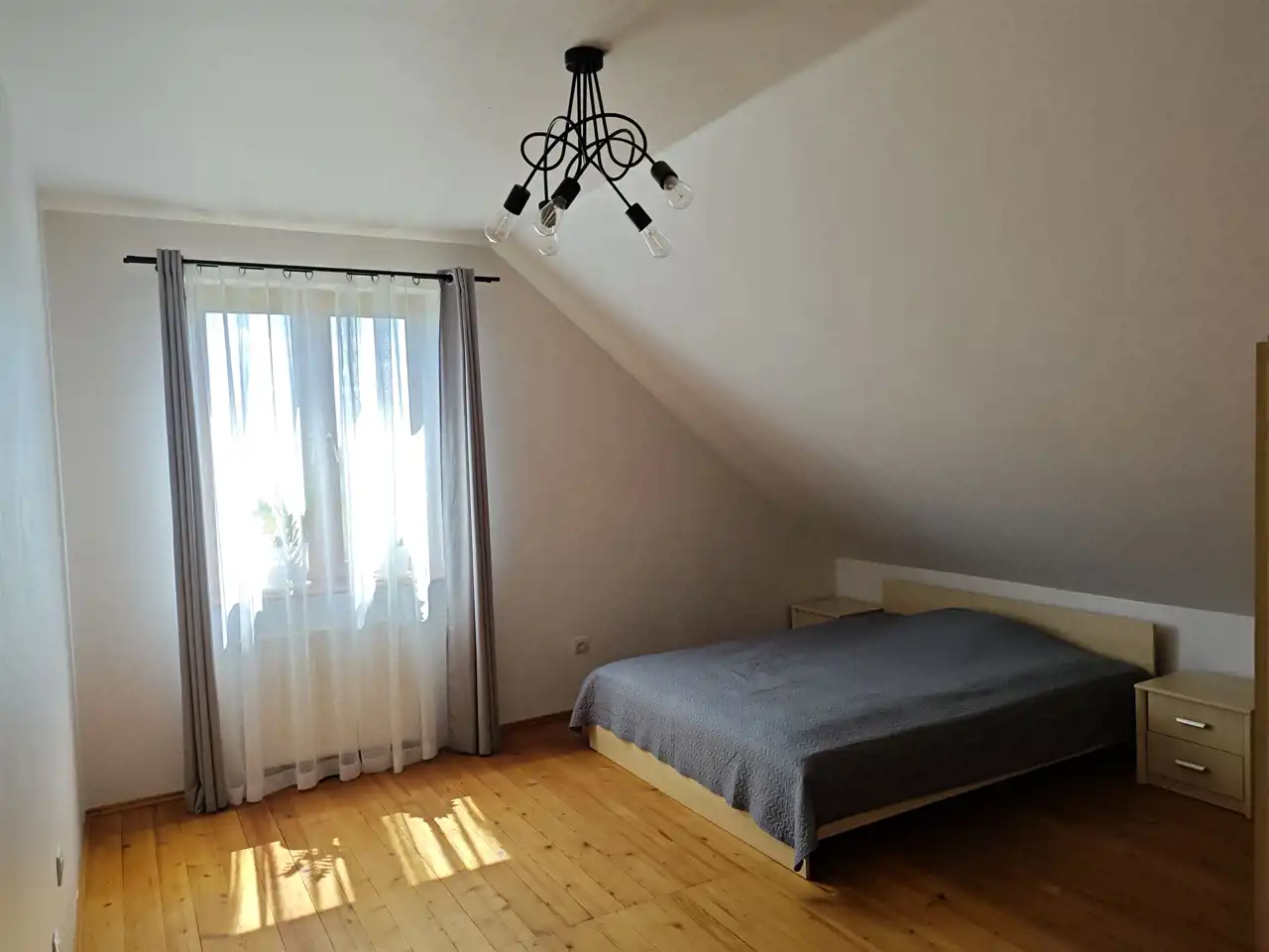 Na poddaszu użytkowym garderoba, łazienka, dwie przestronne sypialnie (ok. 20 m2 netto po podłogach) oraz możliwość zrobienia trzeciej (w tej chwili jest to otwarta przestrzeń, a la antresola).