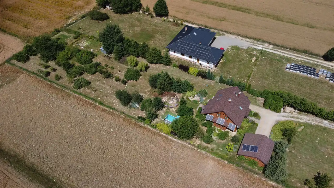 Woda z wodociągu, przydomowa oczyszczalnia ścieków, ogrzewanie gazowe (butla), fotowoltaika na starych zasadach. Do działki jest doprowadzony światłowód.