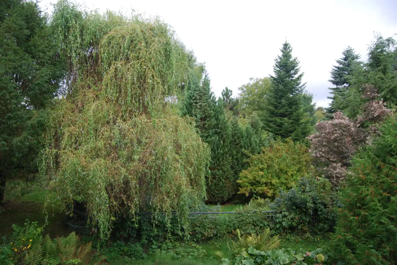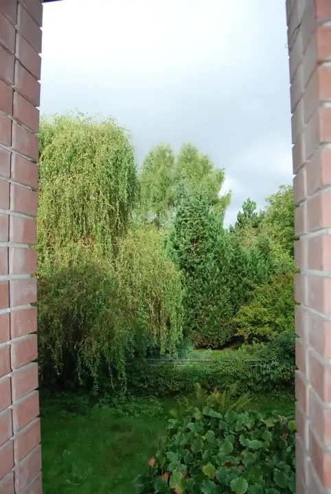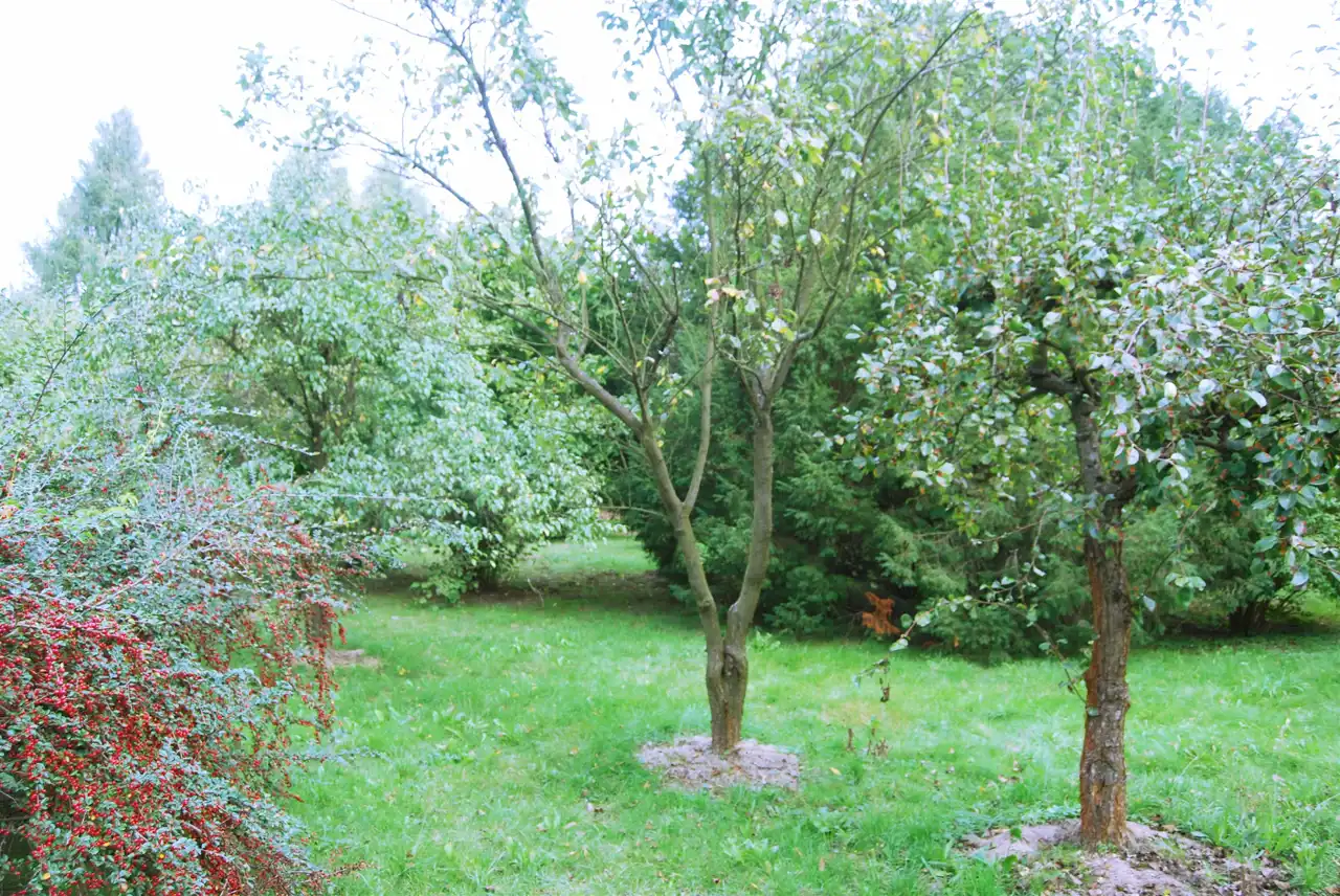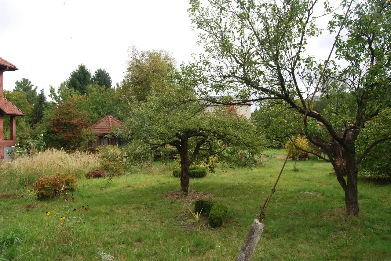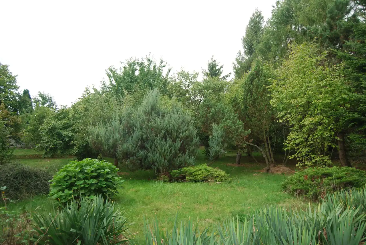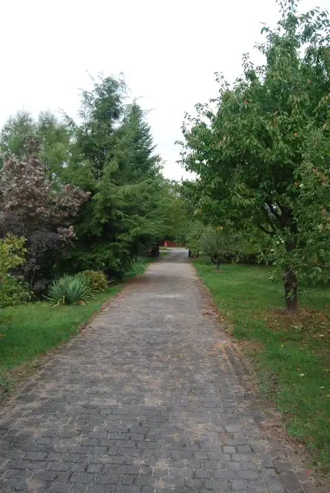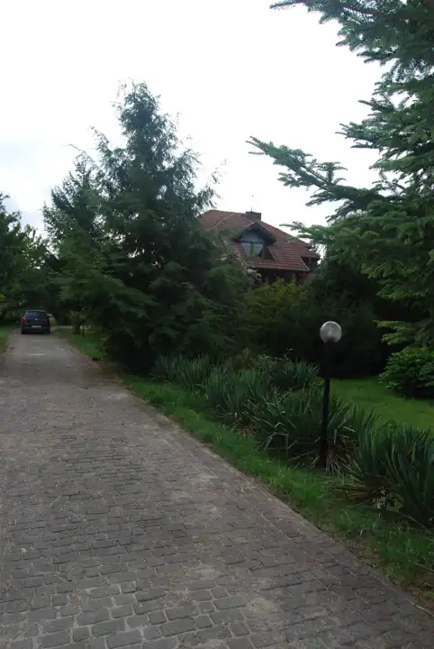 Działka o pow. 4500 m2 w pełni zagospodarowana z licznymi nasadzeniami drzew i krzewów oraz zadbanym trawnikiem. Dwie bramy wjazdowe na nieruchomość, podjazdy wyłożone kostką brukową.