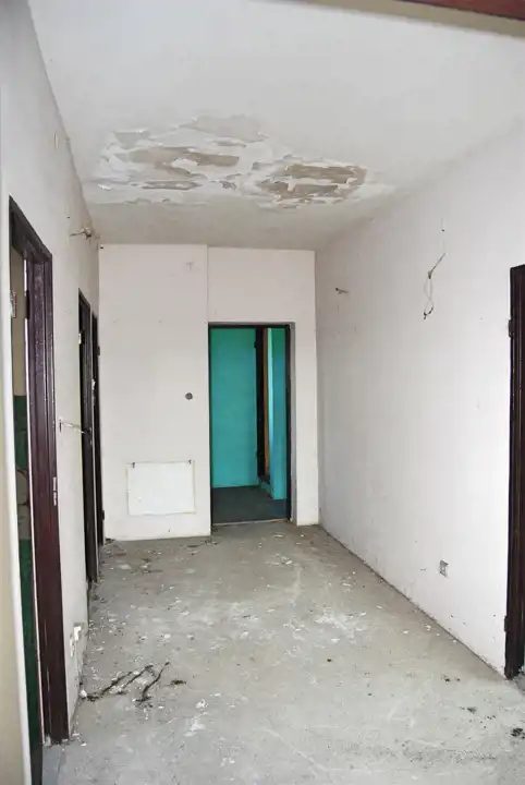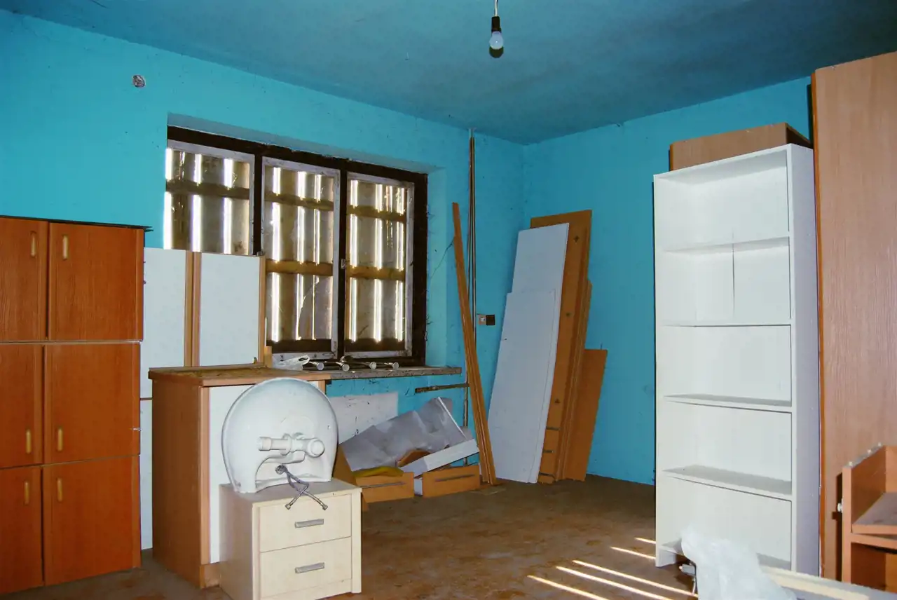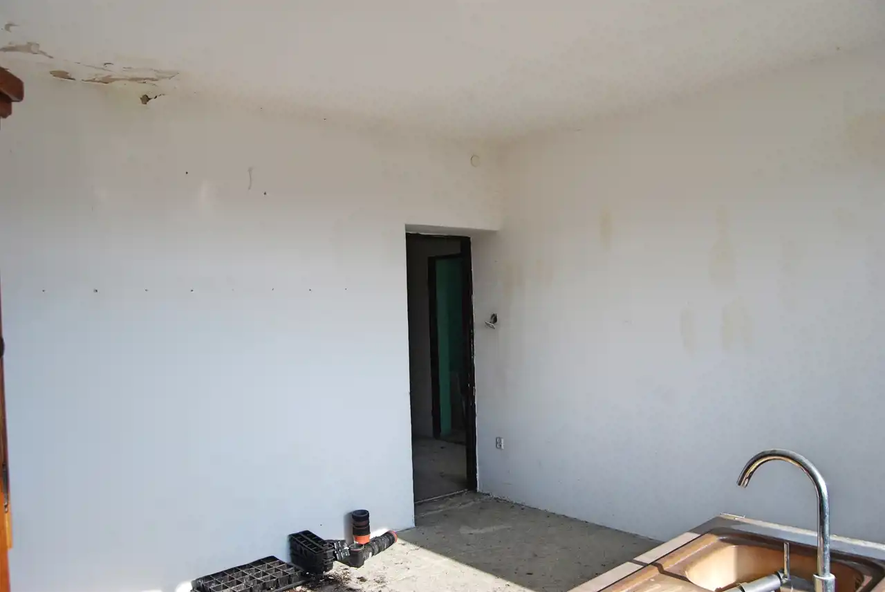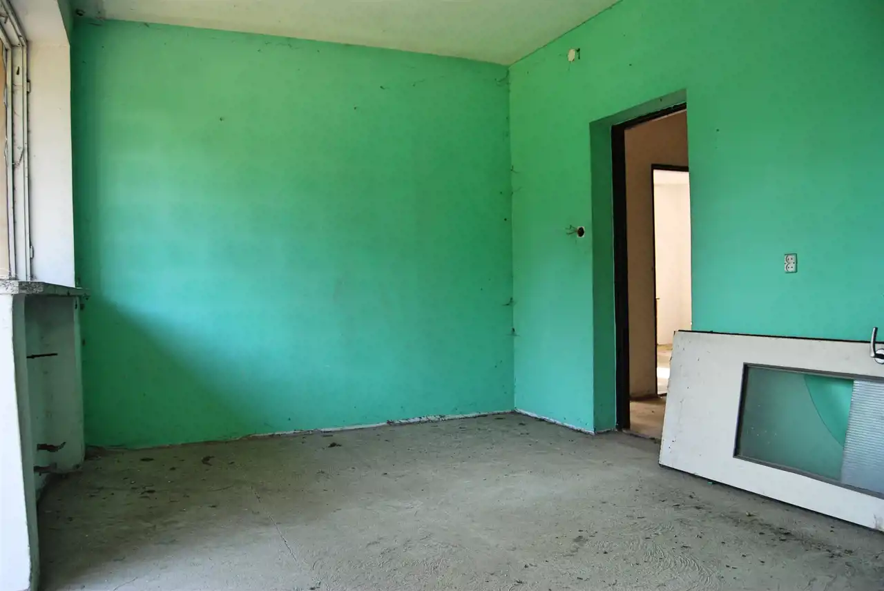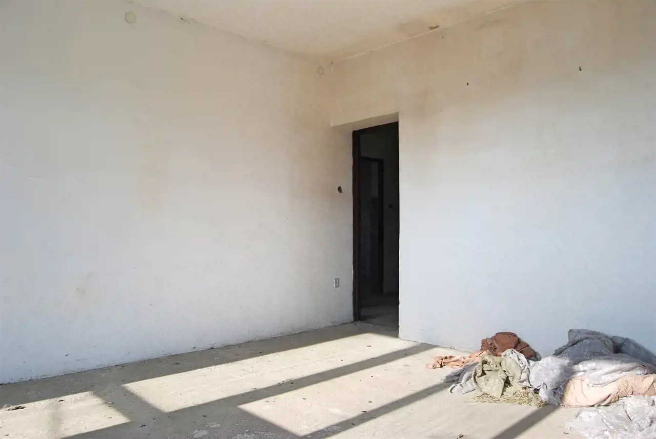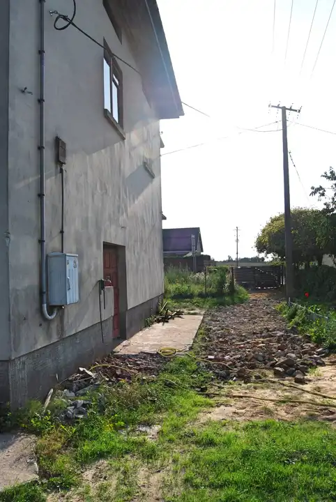 Stan nieruchomości do remontu - okna stare drewniane, brak grzejników i kotła CO, dach kryty eternitem.