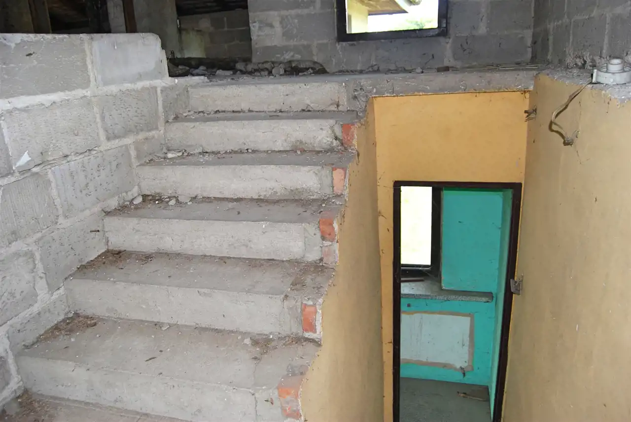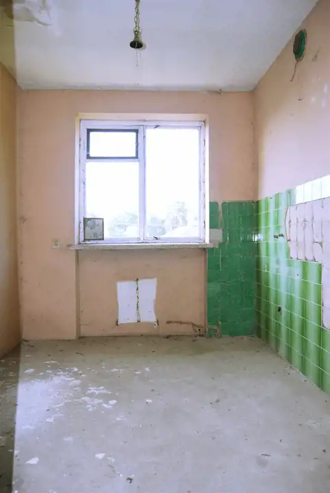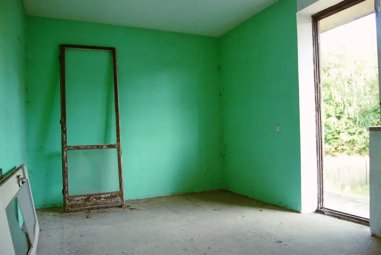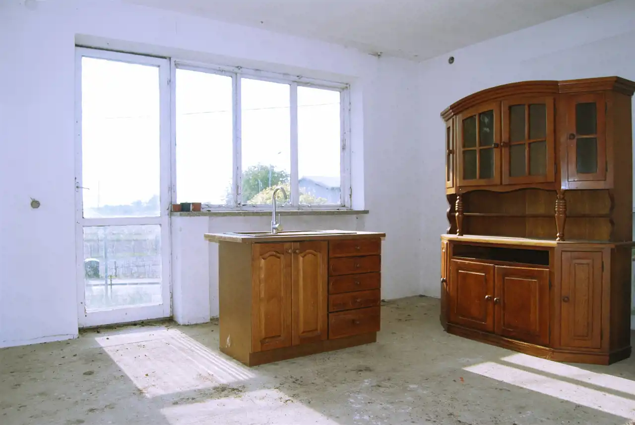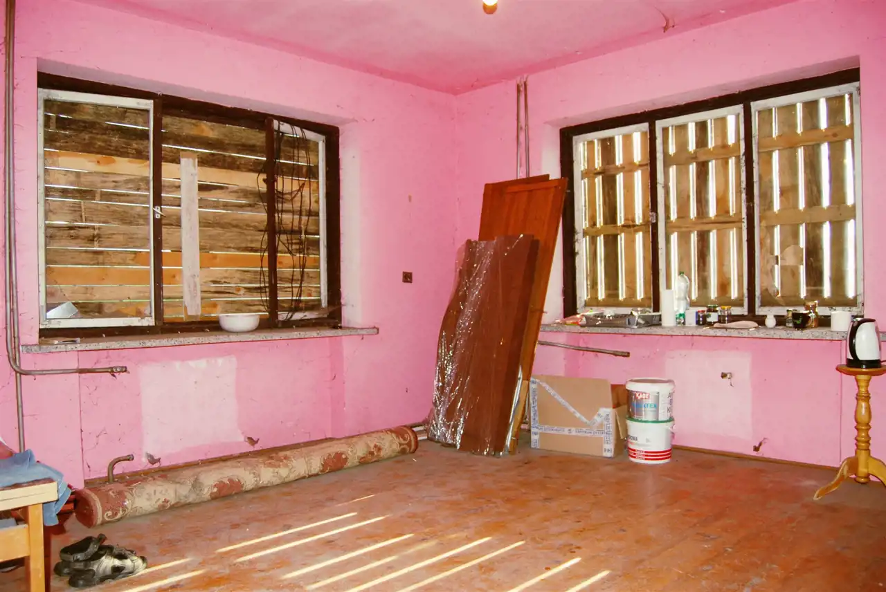 Stan nieruchomości do remontu - okna stare drewniane, brak grzejników i kotła CO, dach kryty eternitem.