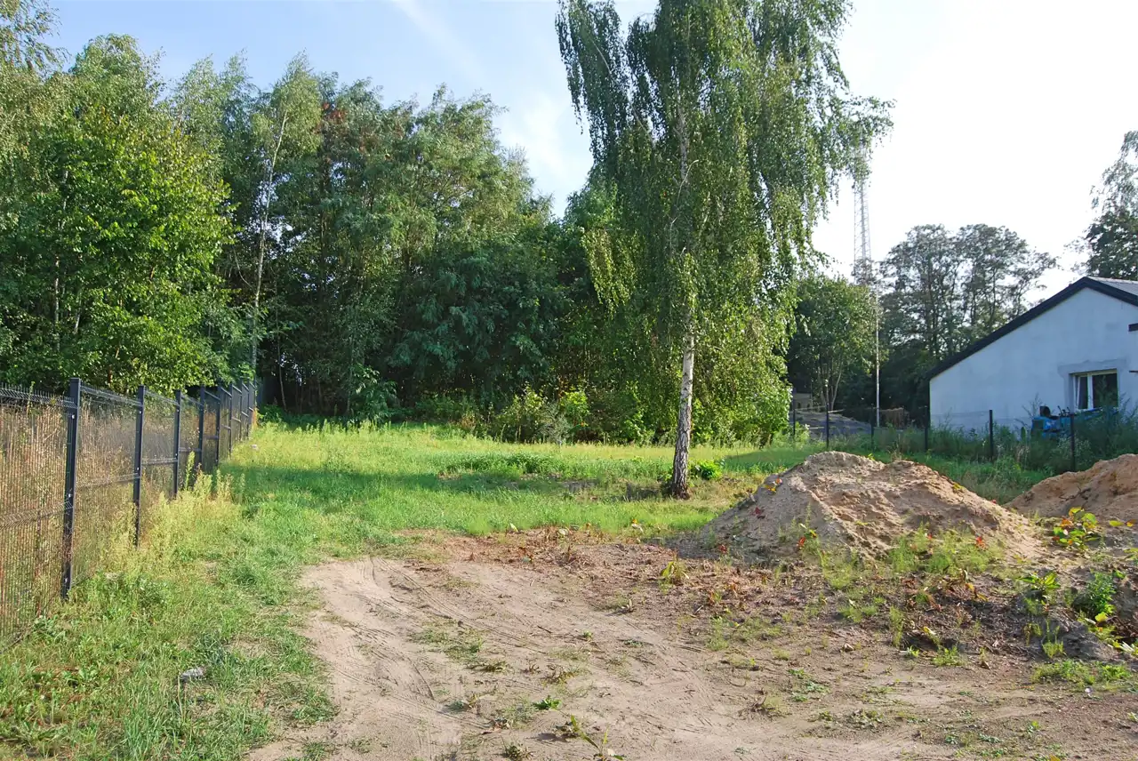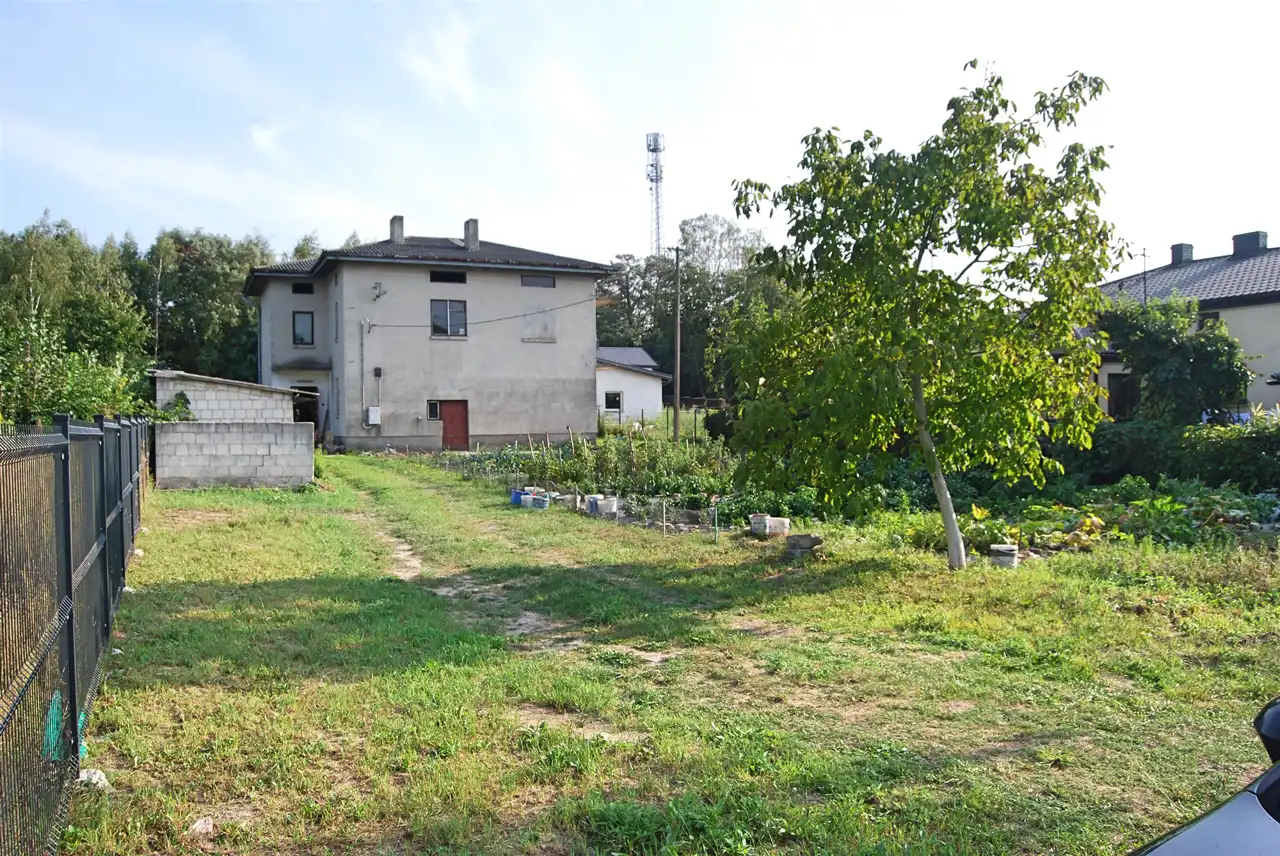 Działka w kształcie prostokąta o pow. 2200 m2 i wymiarach 20m x 110m, w pełni zagospodarowana, ogrodzenie z paneli stalowych, 2 bramy wjazdowe - jedna z drogi wojewódzkiej, druga z grogi gminnej. Możliwość podziału nieruchomości na 2 działki budowlane.