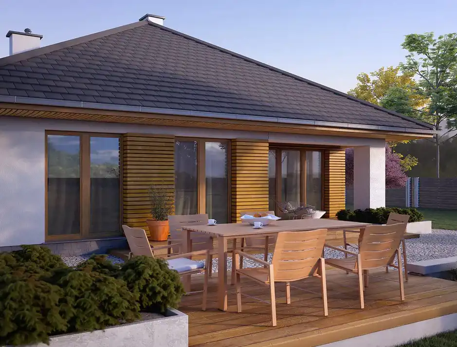 Elka 5 to przemyślany dom parterowy, który łączy funkcjonalność z wygodą codziennego życia.