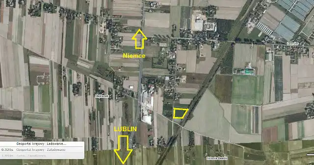 Powierzchnia 7246m2, szerokość 75m. Dojazd asfaltową ulicą gminną. W tej okolicy powstało ostatnio wiele nowych domów jednorodzinnych mimo, że działka położona jest niedaleko torów.