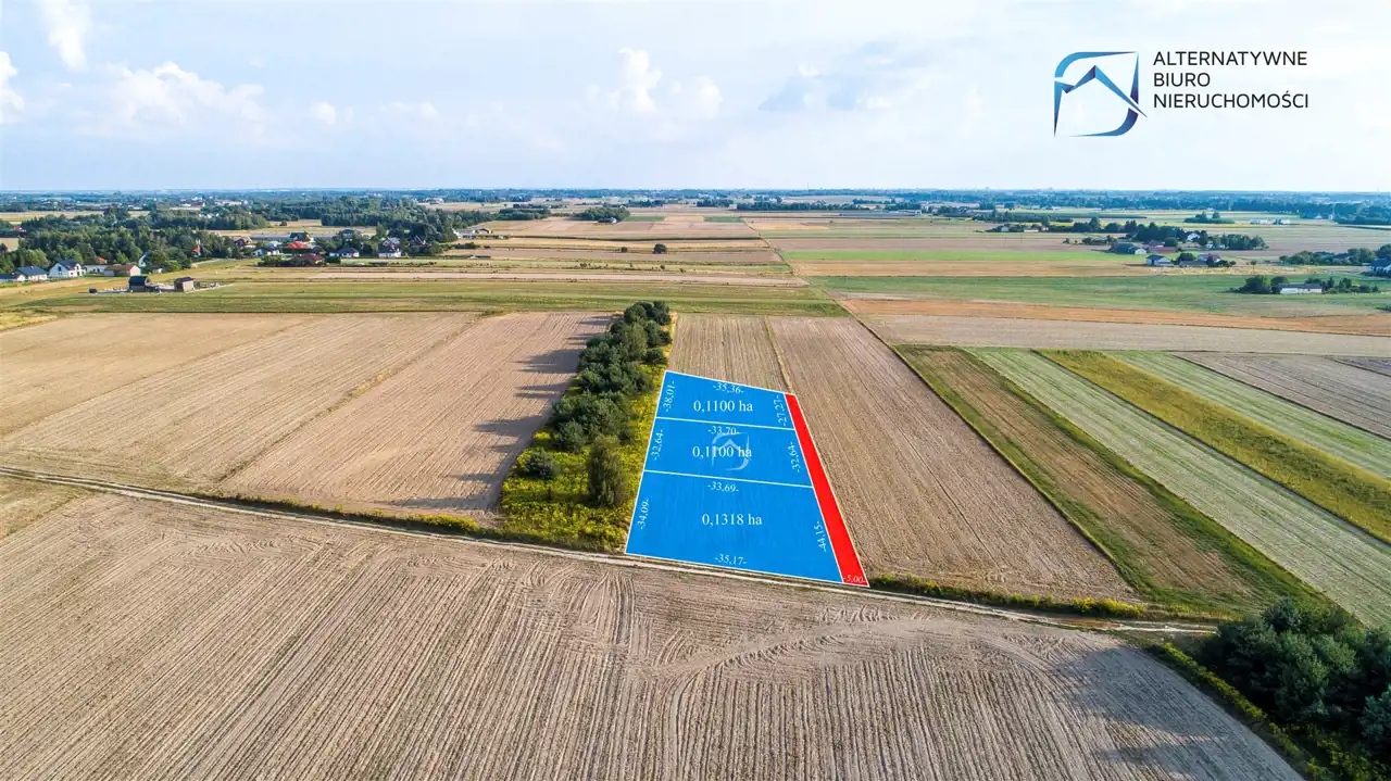Działka budowlana w drugiej linii zabudowy o powierzchni 1100 mkw - cena 125 000 zł, Wymiary: szerokość: 33m, długość: 32m.