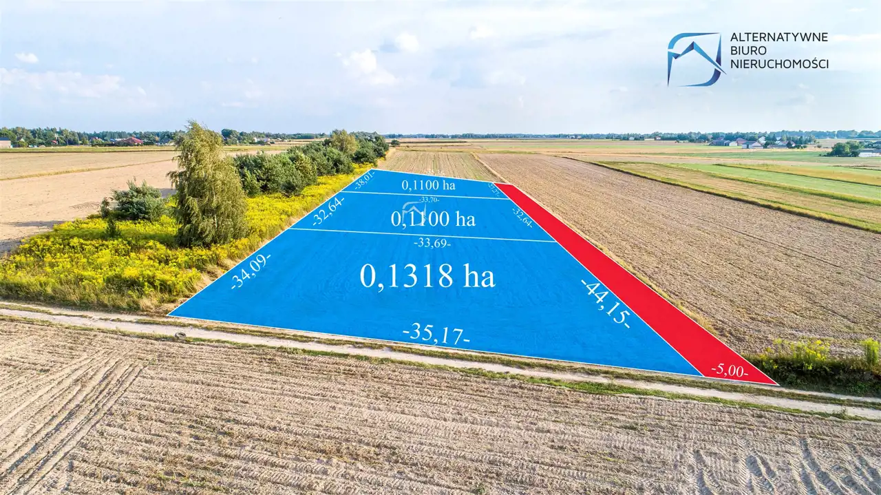 Działka budowlana w pierwszej linii zabudowy o powierzchni 1318 mkw - cena 130 000 zł, Wymiary: szerokość: 35/33m, długość: 34/44m.