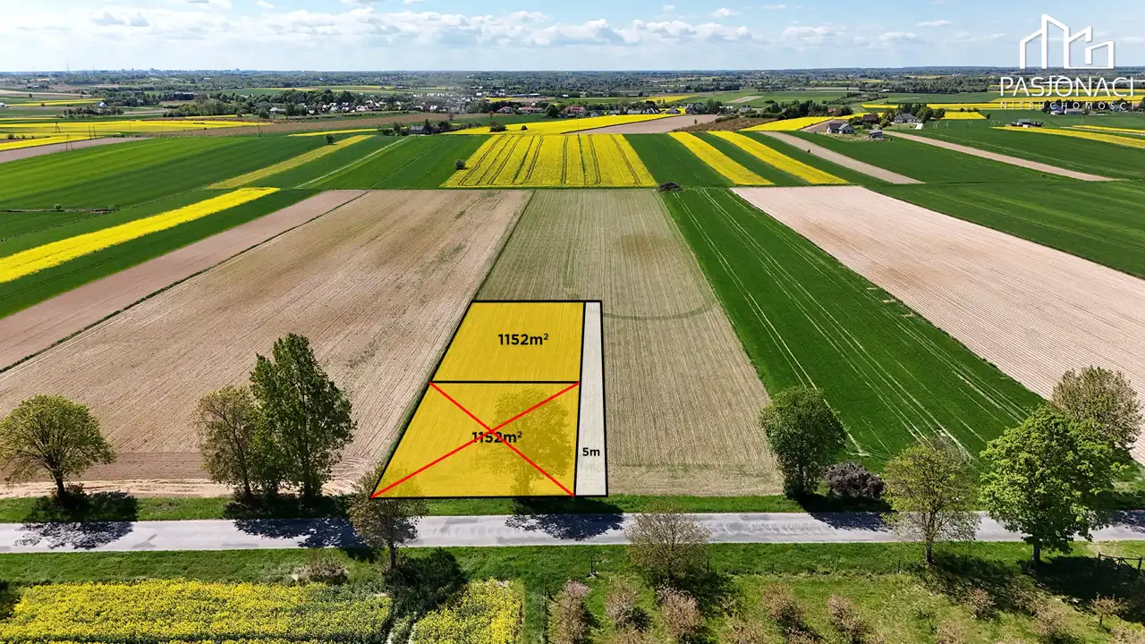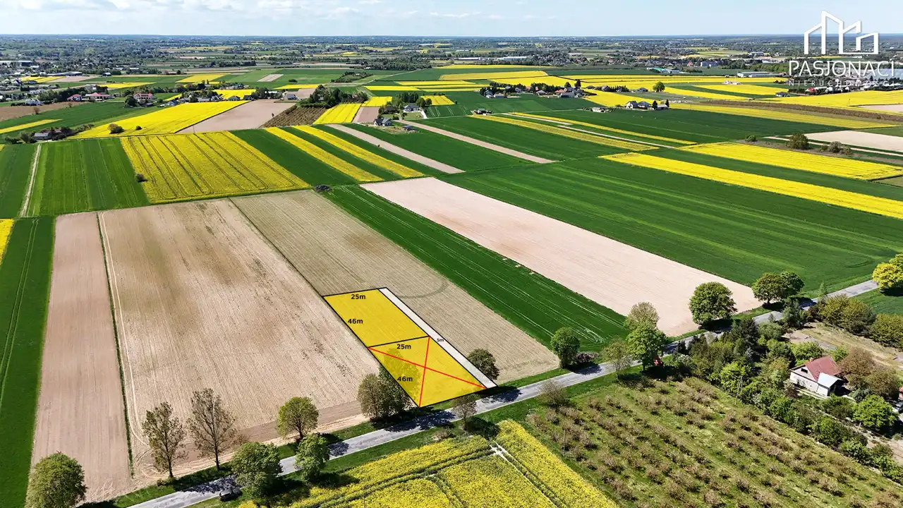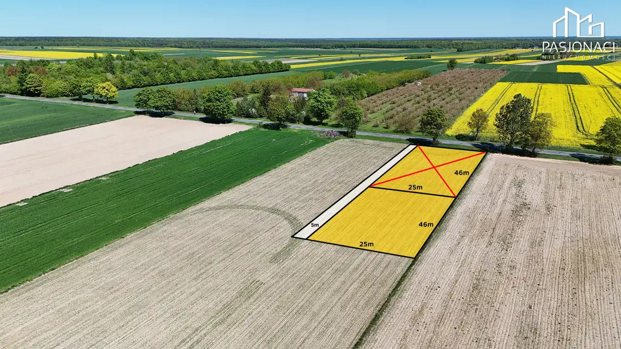 Działka o powierzchni 1152 m², z wymiarami 25 m x 46 m, usytuowana w drugiej linii zabudowy. Miejsce to zapewnia spokój i prywatność, a jednocześnie jest dobrze skomunikowane z głównymi drogami i infrastrukturą.