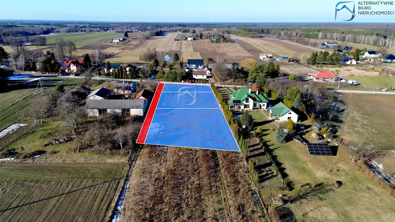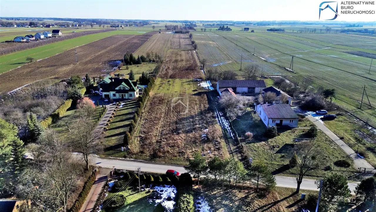 Prezentowana nieruchomość o powierzchni 1053 m² usytuowana jest w pierwszej linii zabudowy, bezpośrednio przy asfaltowej drodze gminnej. Takie położenie gwarantuje wygodny dojazd oraz doskonałe skomunikowanie z regionem, dzięki bliskości drogi wojewódzkiej nr 828.