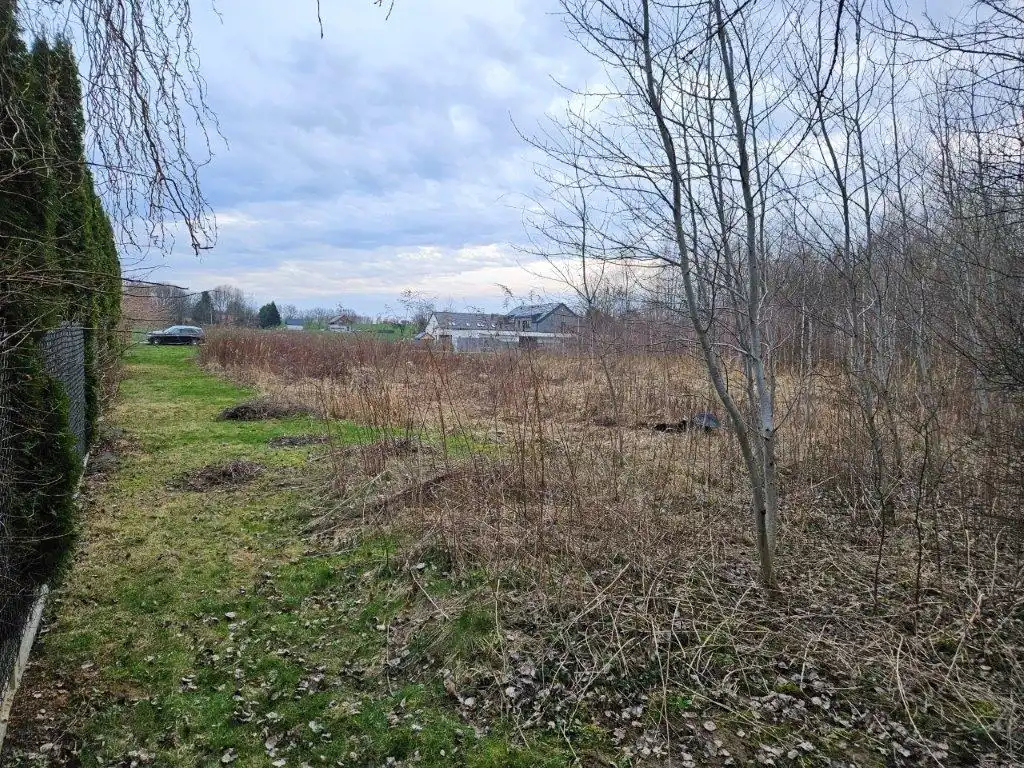 W okolicy są nowe domy jednorodzinne, ale także tereny leśne, nie przeznaczone pod zabudowę. Działka jest niemal kwadratowa i ma aż 35m szerokości.