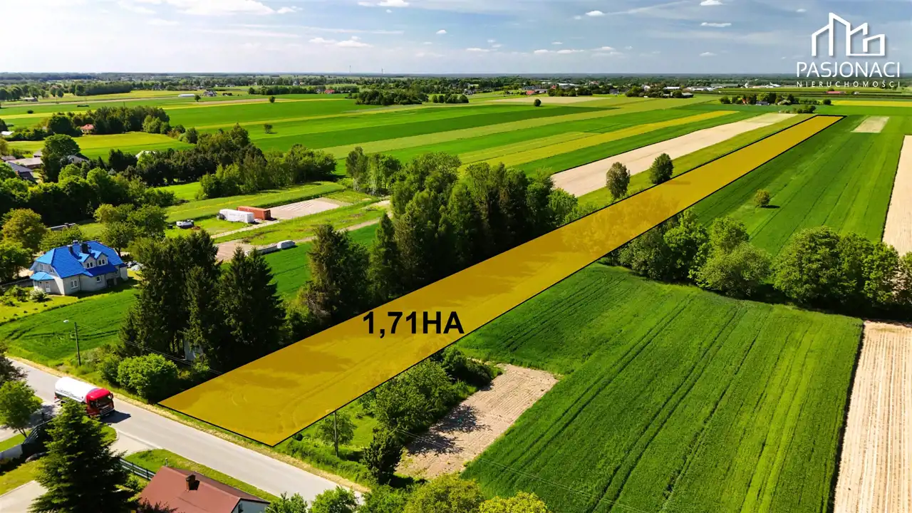 Ofertę sprzedaży stanowi nieruchomość położona w podmiejskiej miejscowości Majdan Krasieniński (gmina Niemce). Grunt składa się z dwóch numerów ewidencyjnych 903/2 oraz 903/3 o łącznej powierzchni 1,7195 Ha. Wymiary prezentowanej nieruchomości oznaczone są na jednym ze zdjęć.