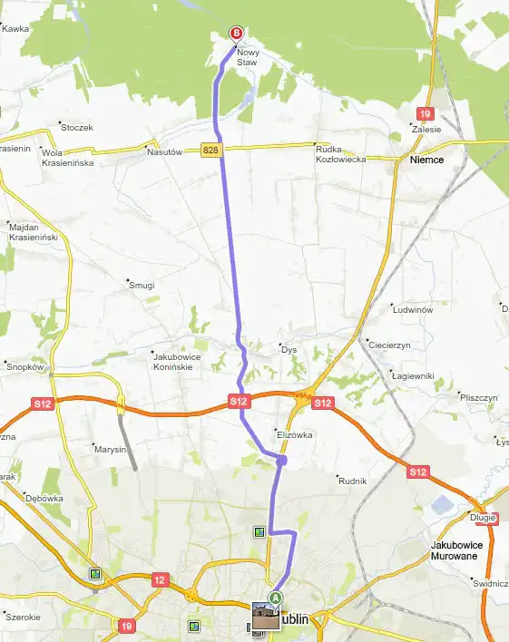 W odległości 4 km w Nasutowie kończy bieg autobus miejski linii 24.