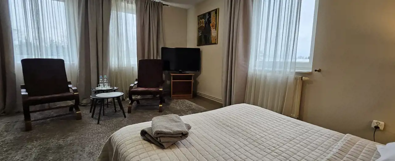 - 21 pokoi gościnnych dwupokojowych po ok.10/15 m2, każdy z łazienką i telewizorem