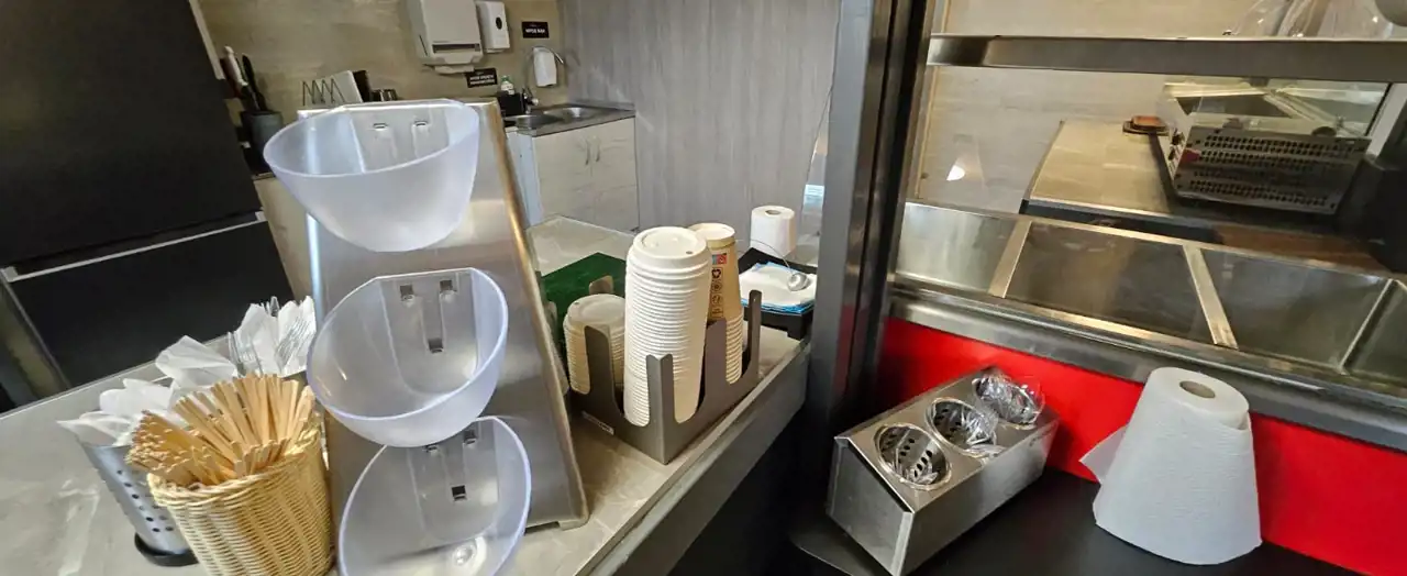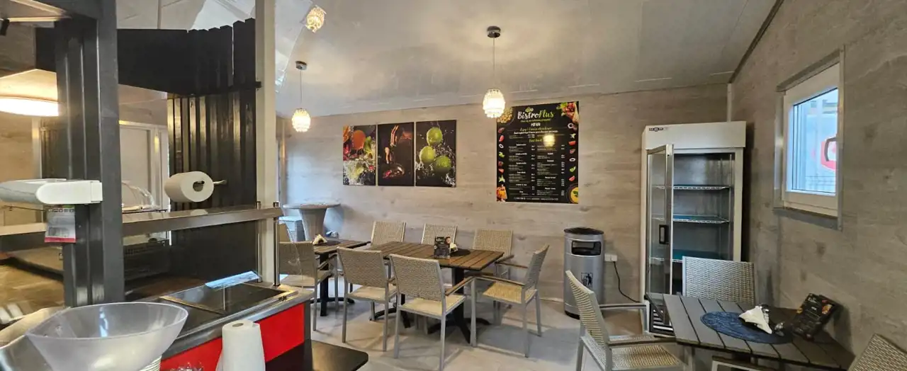 Oferujemy Państwu gotowy lokal na prowadzenie działalności gastronomicznej w doskonałej lokalizacji z dużym parkingiem. Lokal wyposażono we wszystkie niezbędne urządzenia i sprzęty do przygotowywania, podgrzewania i sprzedaży szybkich posiłków. Lokal jest nowy i nieużywany, wszystkie sprzęty również, niewiarygodna dbałość o szczegóły i funkcjonalność jest zdumiewająca. Nie wymaga on żadnych dodatkowych nakładów finansowych. Wnętrze podzielono na dwie strefy: sprzedaż i mini restaurację, w której umieszczono stoliki konsumpcyjne. Do lokalu przynależy ogrodzony roślinnością taras, na którym można ustawić kilka stolików i tym samym powiększyć liczbę gości. Taras prowadzi do pięknej alejki spacerowej z fontanną. Latem z pewnością będzie dużym atutem dla odwiedzających. Sam lokal leży w niewielkiej odległości od sklepu spożywczym Stokrotka, z którym to dzieli parking.