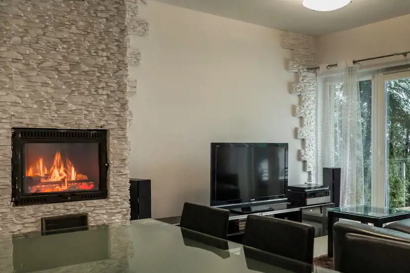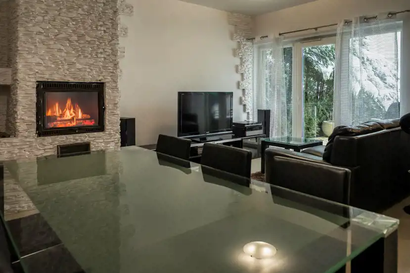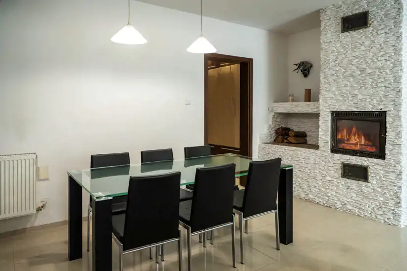 * Przestronny salon z kominkiem i wyjściem na taras