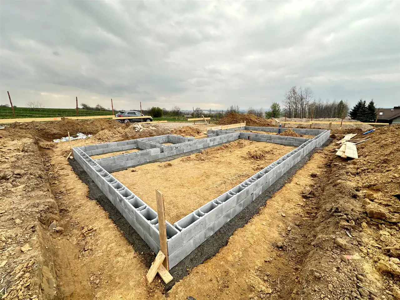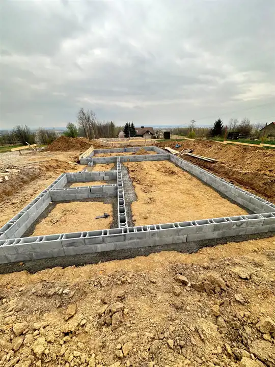 Dbając o komfort przyszłych Właścicieli domu, budujemy dom na dużej 10 arowej działce ogrodzonej z trzech stron.