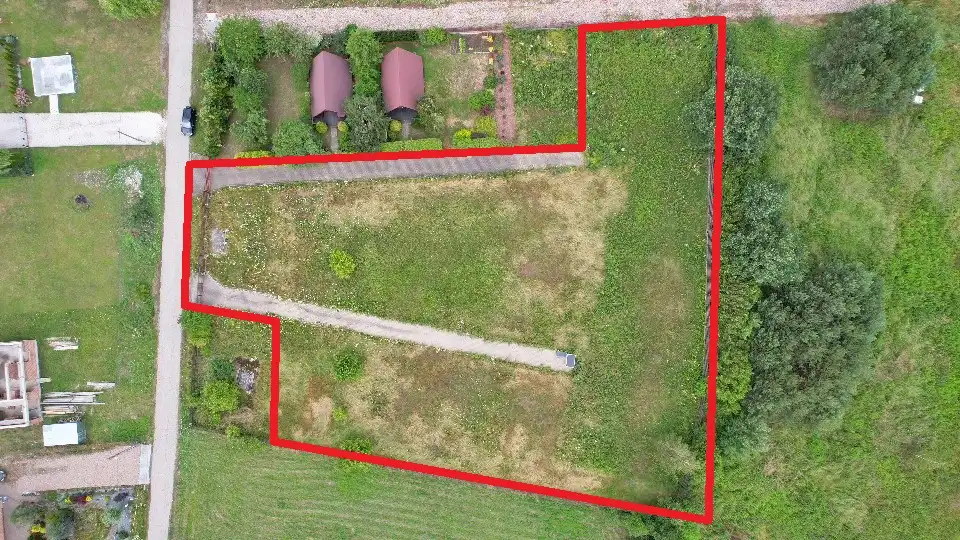 - Działka częściowo zagospodarowana, płaska, nieregularny