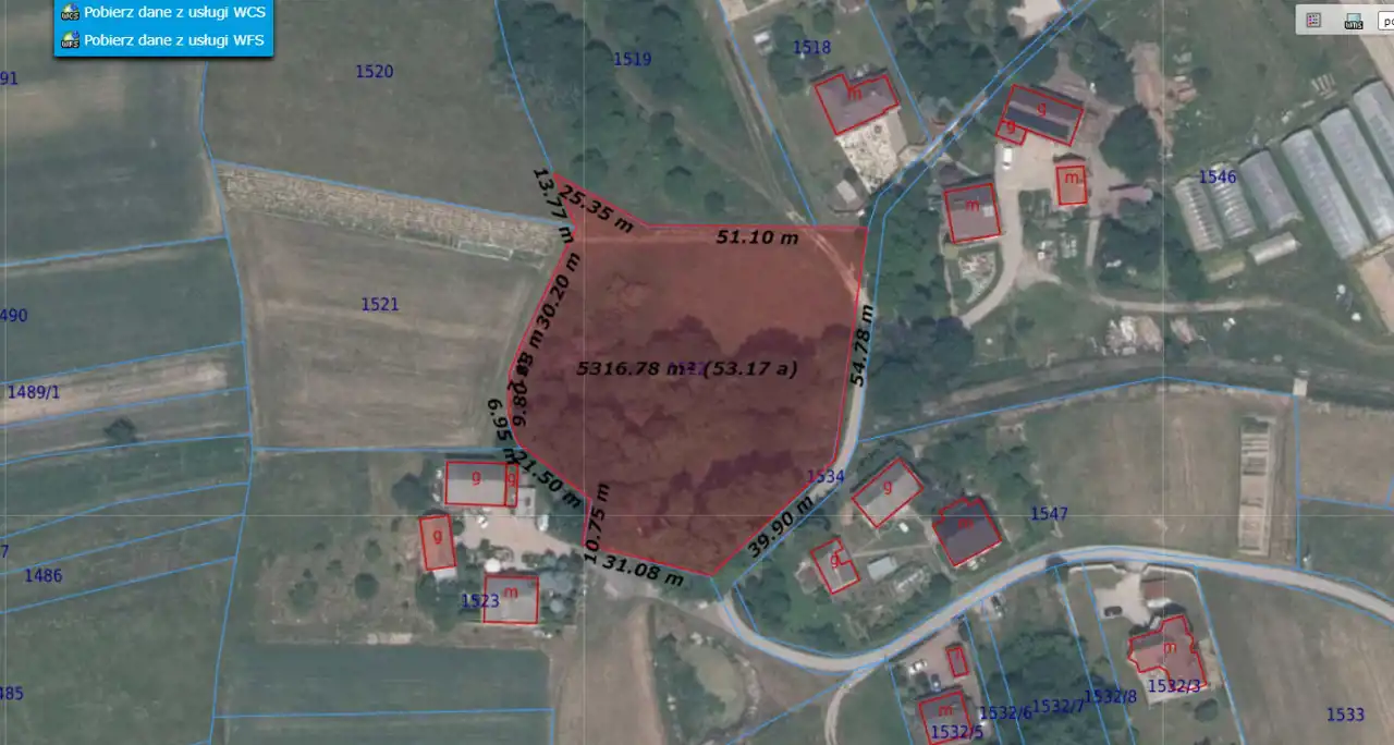 Wola Batorska, gmina Niepołomice. Działka o pow. 5314 m2, pod zabudowę jednorodzinną, w okolicy Puszczy Niepołomickiej.