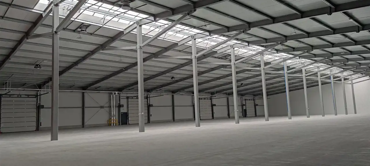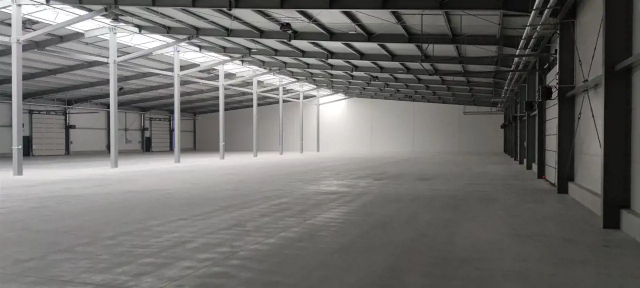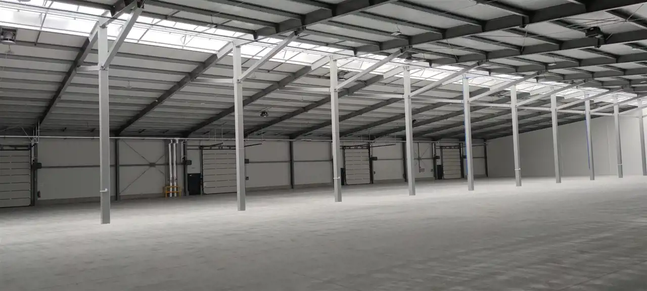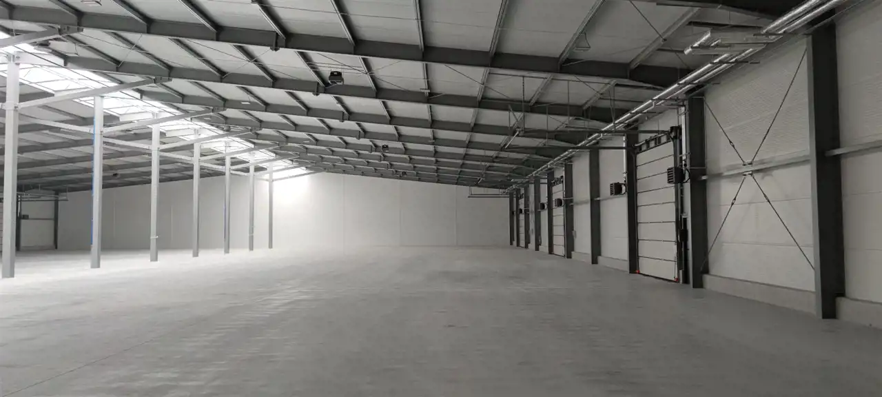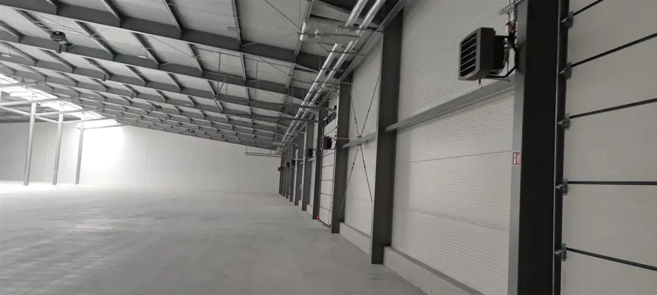 Hala ogrzewana za pomocą nowoczesnych nagrzewnic gazowych.