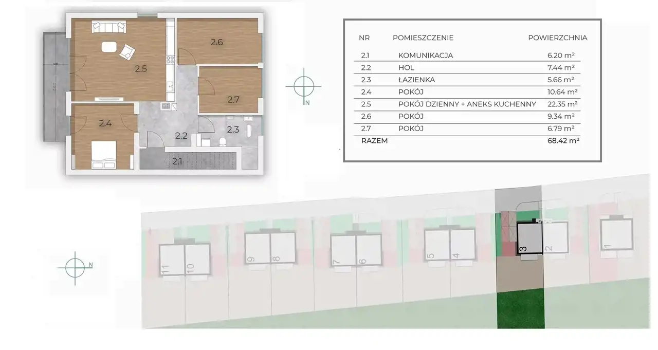 - Charakterystyka mieszkania 68.42 m2, 4 pokoje