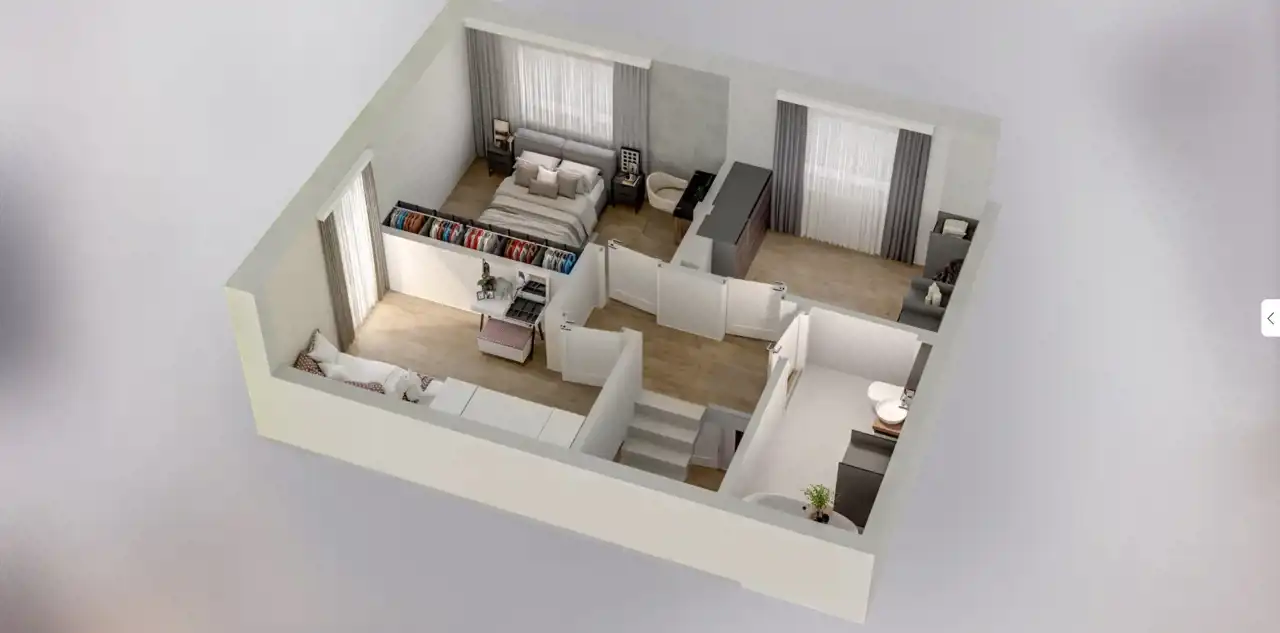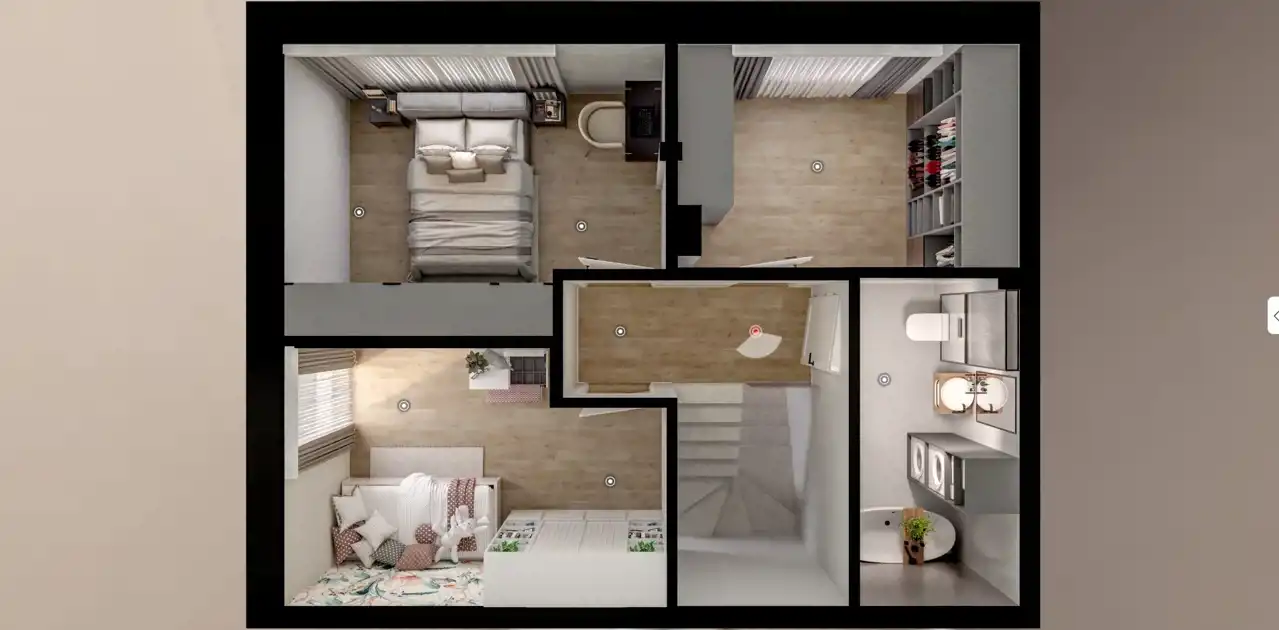 W strefie prywatnej znajdują się trzy wygodne sypialnie, łazienka i hol.