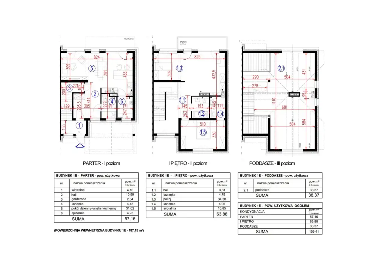 - parapety wewnętrzne – brak