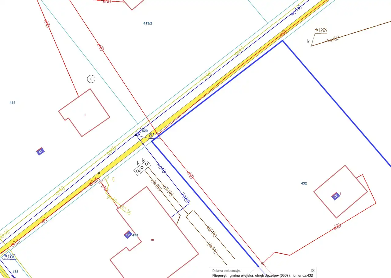 - Działka częściowo zagospodarowana, płaska, prostokąt