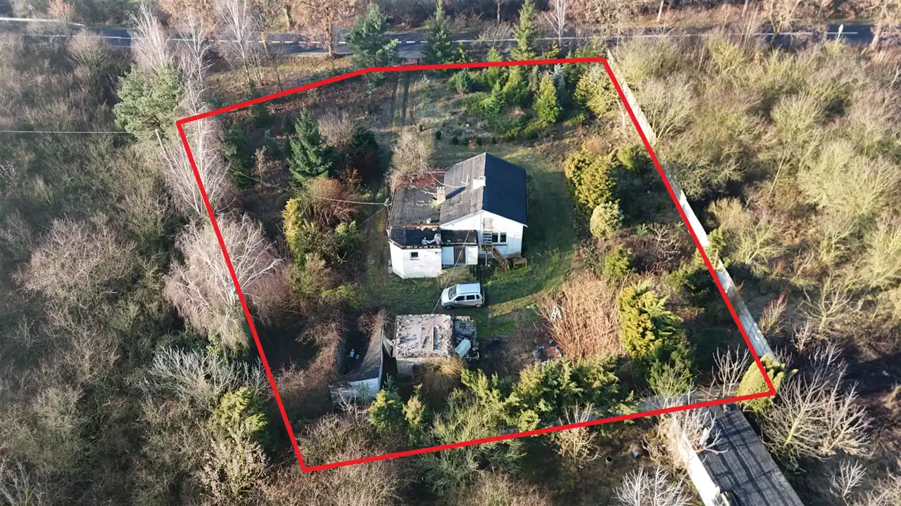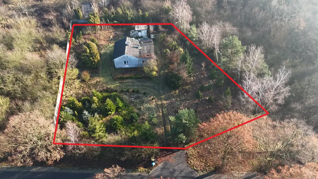 - Działka częściowo zagospodarowana, lekko nachylona, nieregularny