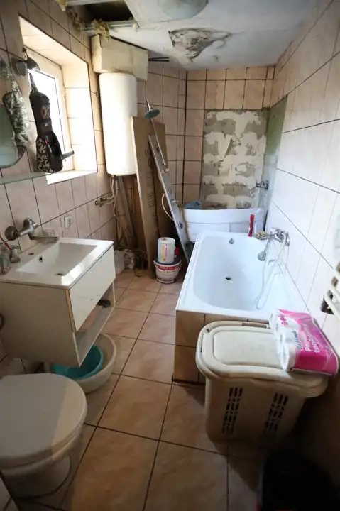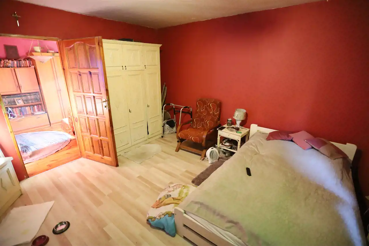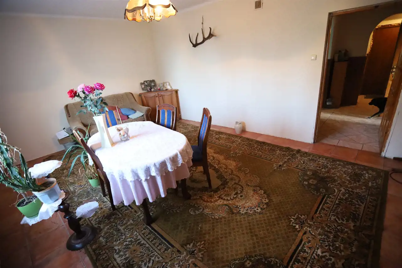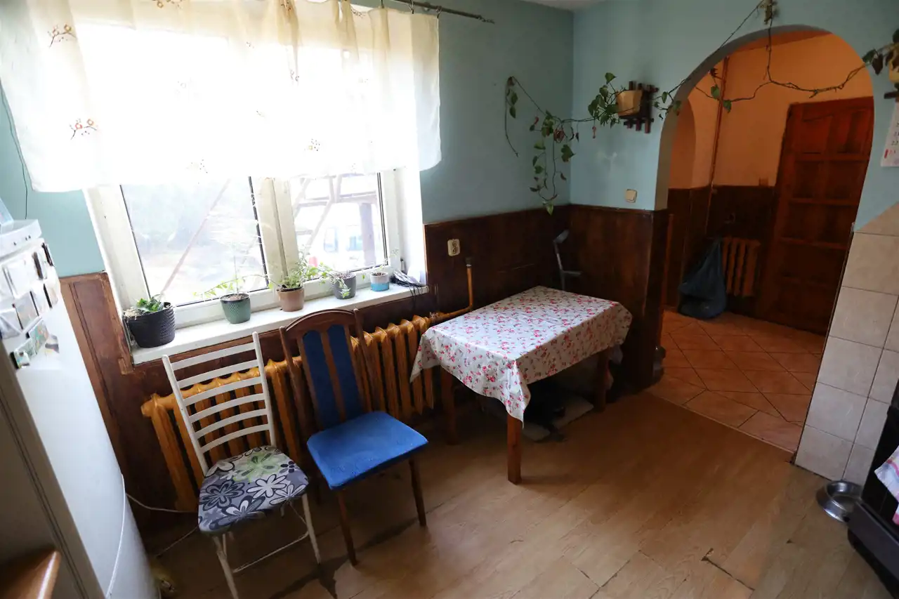 Dom wymaga przeprowadzenia remontu, szczególnie pokrycie dachowe. Wewnątrz budynku należy dokonać naprawy sufitu w jednym z pokoi oraz całkowicie wyremontować łazienkę.