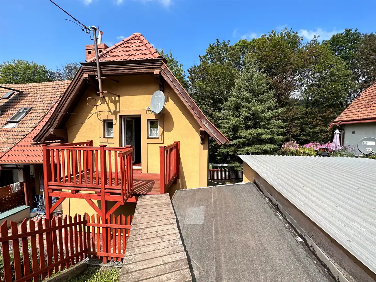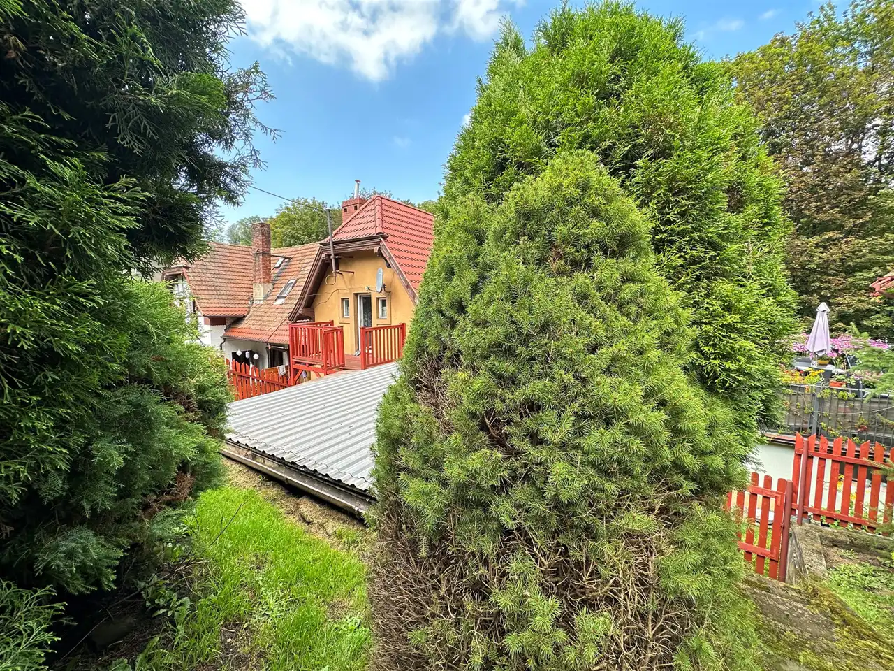 Na działce znajduje się również garaż z komórką oraz altanka.