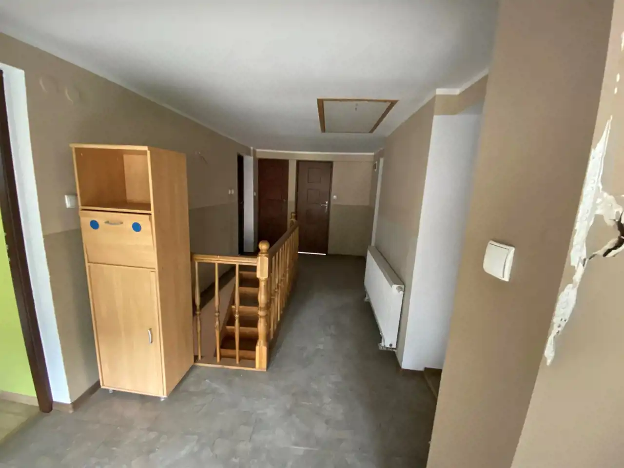 Prace remontowe jakie zostały wykonane w nieruchomości to: wymiana instalacji elektrycznej, wymiana okien, podług, głazie, wstawienie nowych drzwi, 2 pokoje na dole zostały przygotowane do remontu (zbite tynki) jednak dom długo nie był zamieszkiwany i wymagany jest remont.