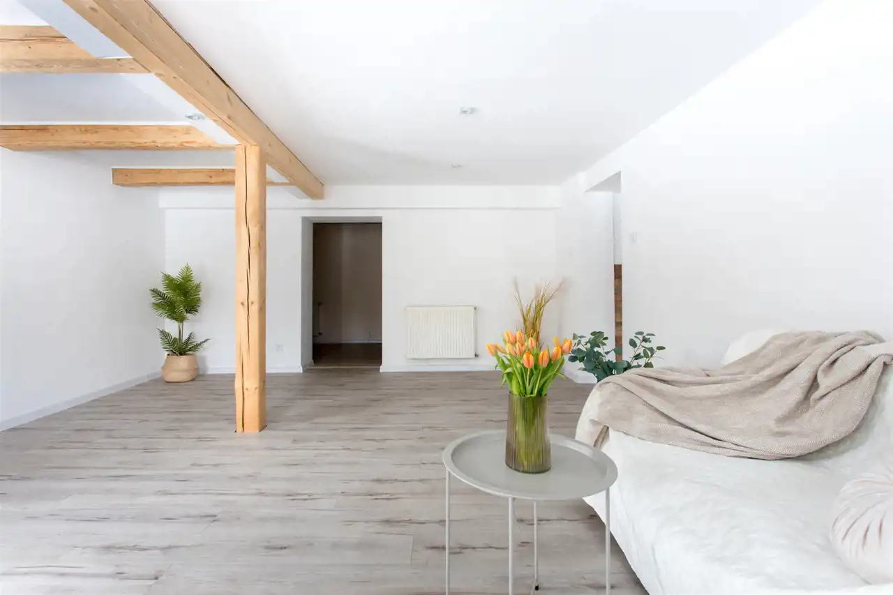 Dom o powierzchni 144 m², po generalnym remoncie, urzeka ponadczasowym stylem, funkcjonalnym układem oraz klimatycznym kominkiem, który tworzy wyjątkową atmosferę w części dziennej.