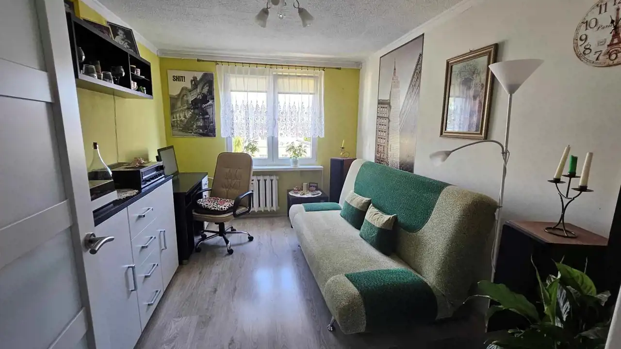 W pokojach położone panele, w kuchni, przedpokoju oraz łazience płytki, okna PCV, ściany gładzone.