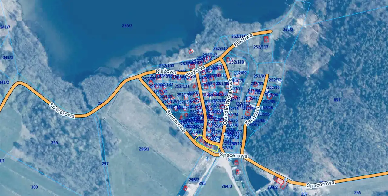 - Działka częściowo zagospodarowana, lekko nachylona, prostokąt