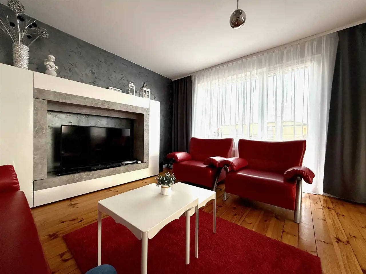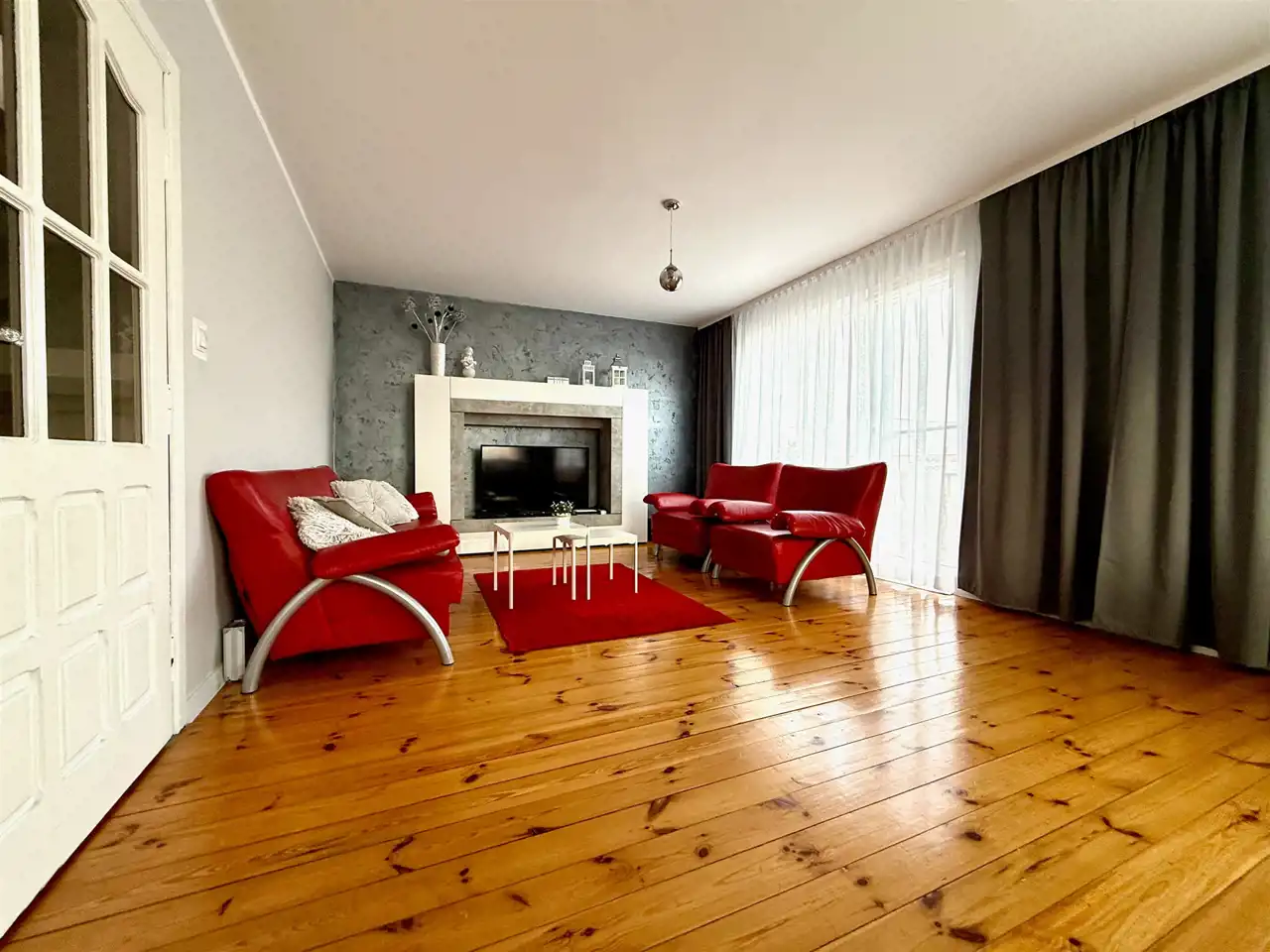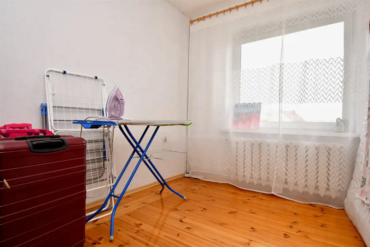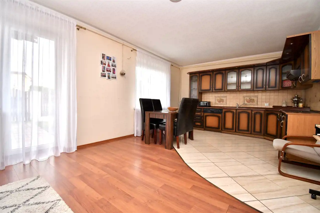 - Parter z dodatkowym osobnym wejściem: przestronny salon z aneksem kuchennym (w cenie zabudowa kuchenna, stół z krzesłami oraz sprzęt AGD), łazienka z WC, kotłownia, pomieszczenia gospodarcze.