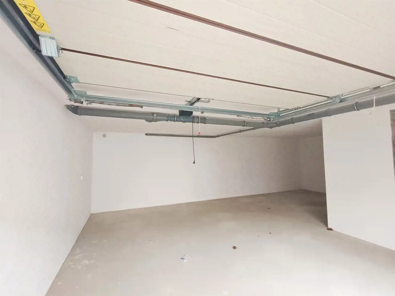 -garaż otynkowany, pomalowany na biało